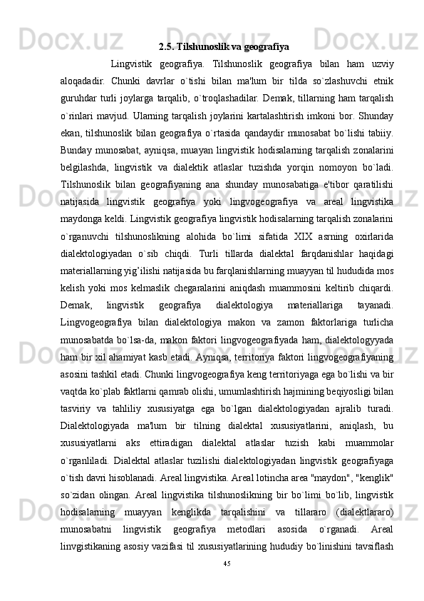 2.5. Tilshunoslik va geografiya…………………………………………….41