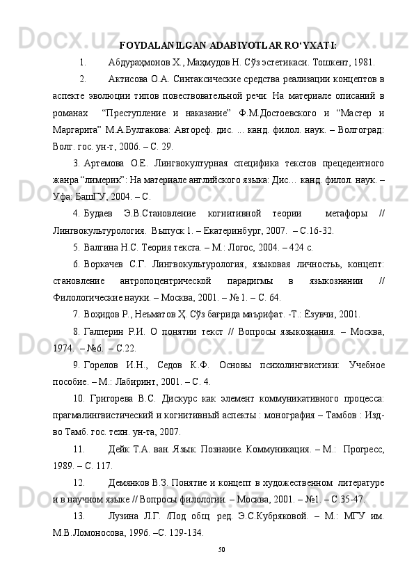 FOYDALANILGAN ADABIYOTLAR RO`YXATI..............................45