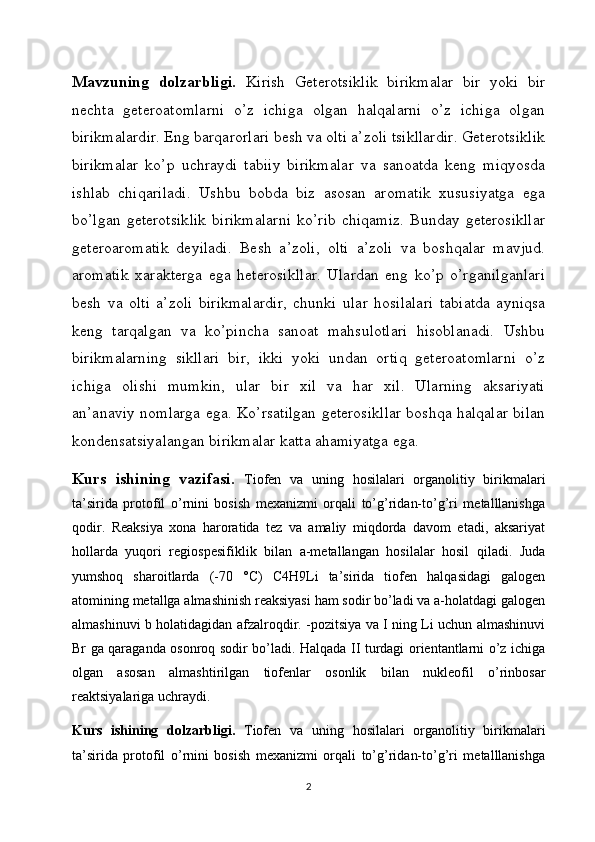 Tiofen haqida kurs ishi