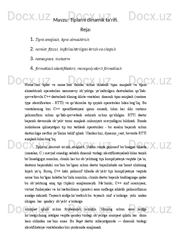 Tiplarni dinamik ta’rifi ( Dasturlash )