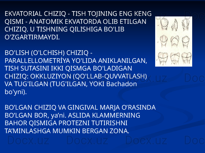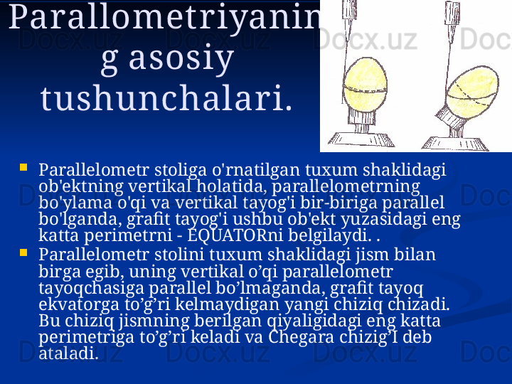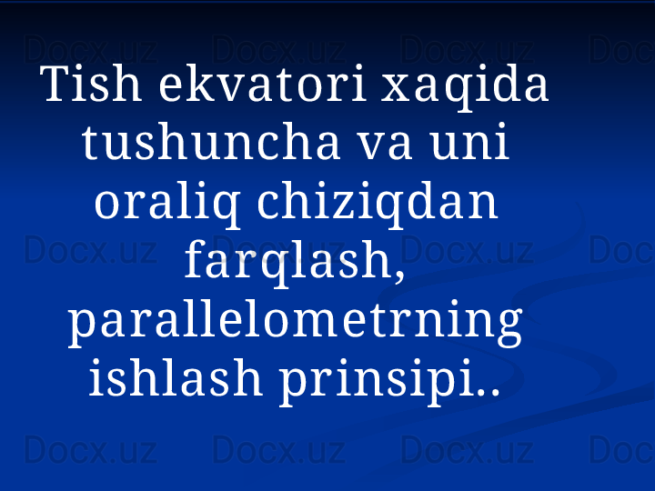 Tish ekvatori xaqida tushuncha va uni oraliq chiziqdan farqlash, parallelometrning ishlash prinsipi..