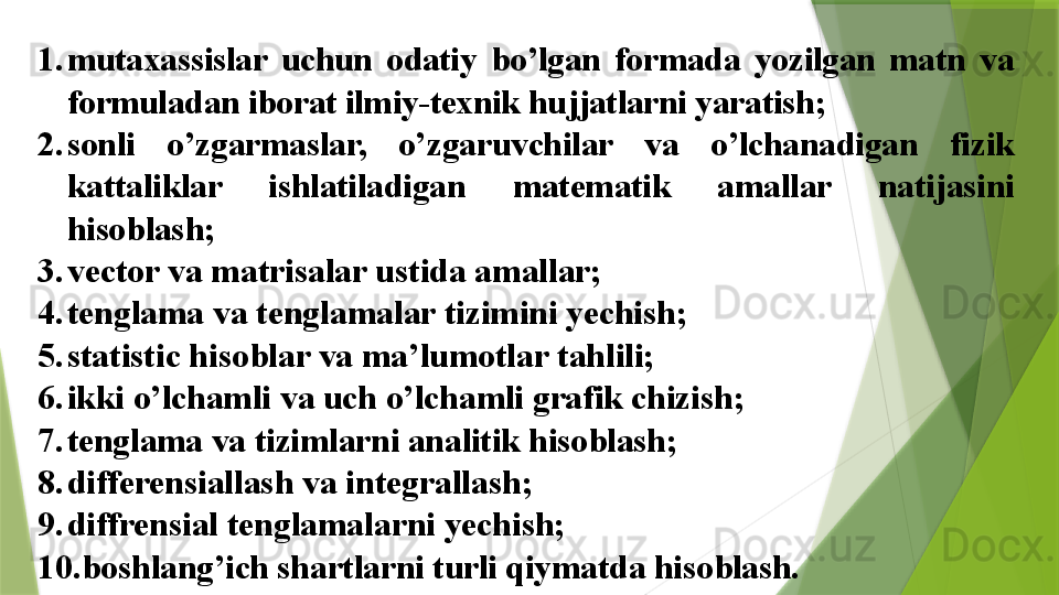 Tizimlarda issiqlik energiyasi bilan bog'liq masalalarni tahlil qilish usullarini qo'llash. MathCad tizimida ishlash texnologiyalari