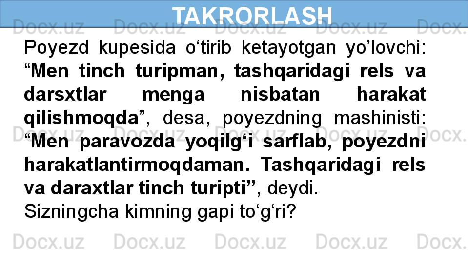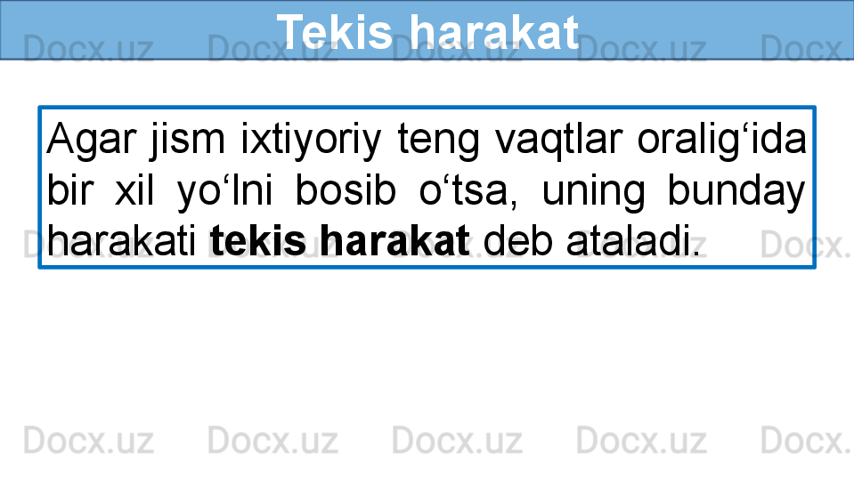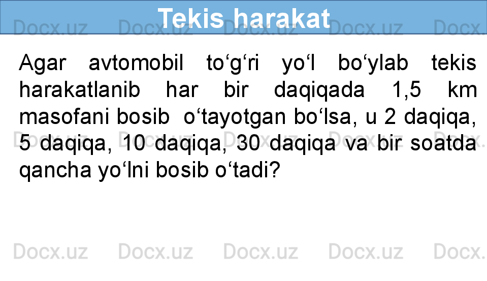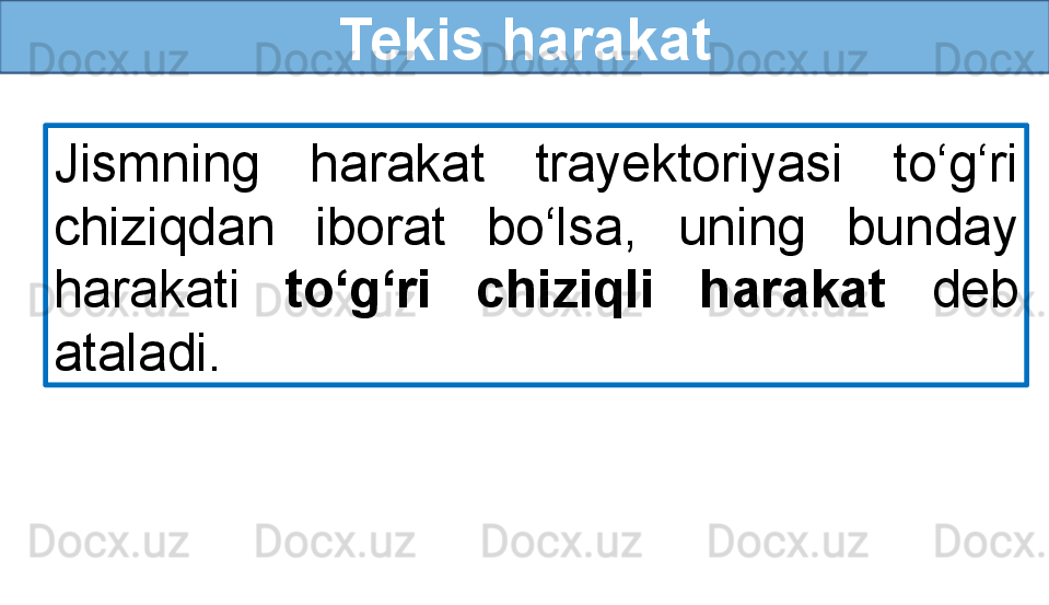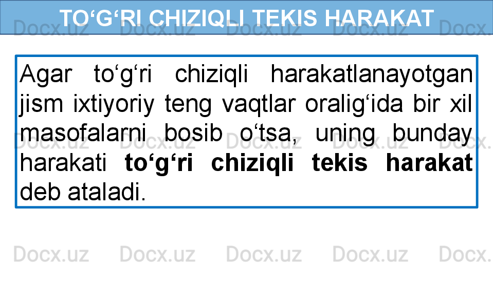 To‘g‘ri chiziqli tekis harakat haqida tushuncha