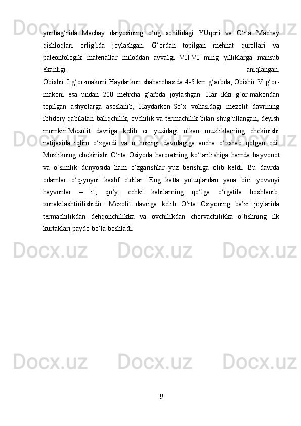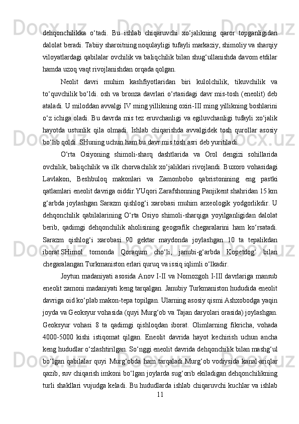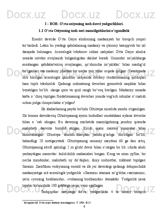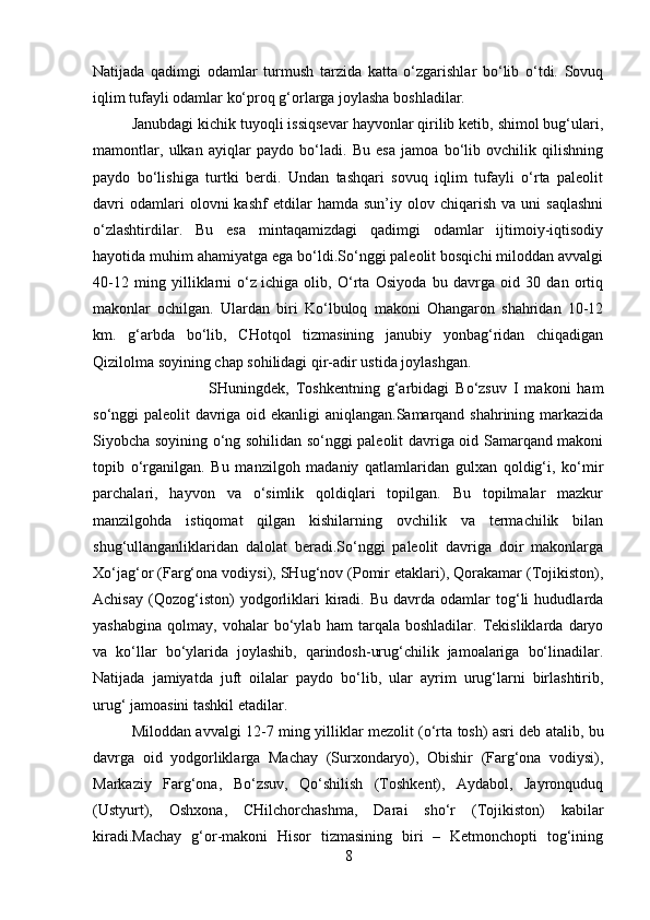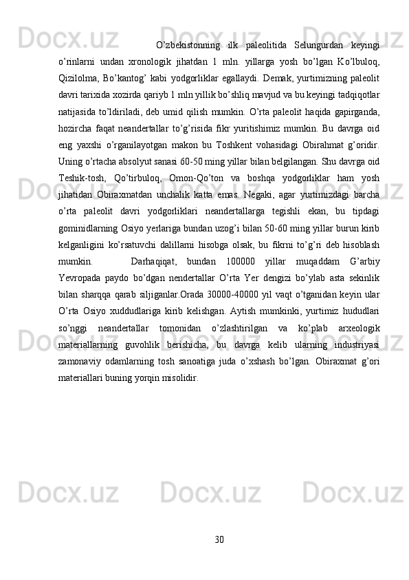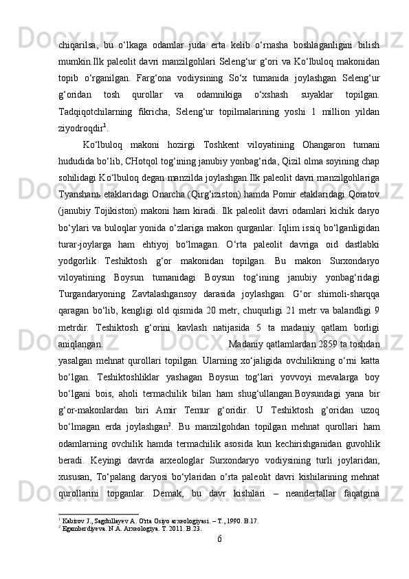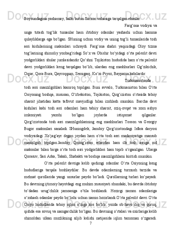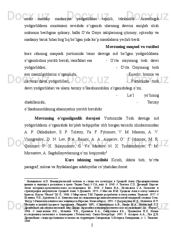 Tosh davri yodgorliklari va ularni tarixiy o’lkashunoslikni o’rganishdagi o’rni
