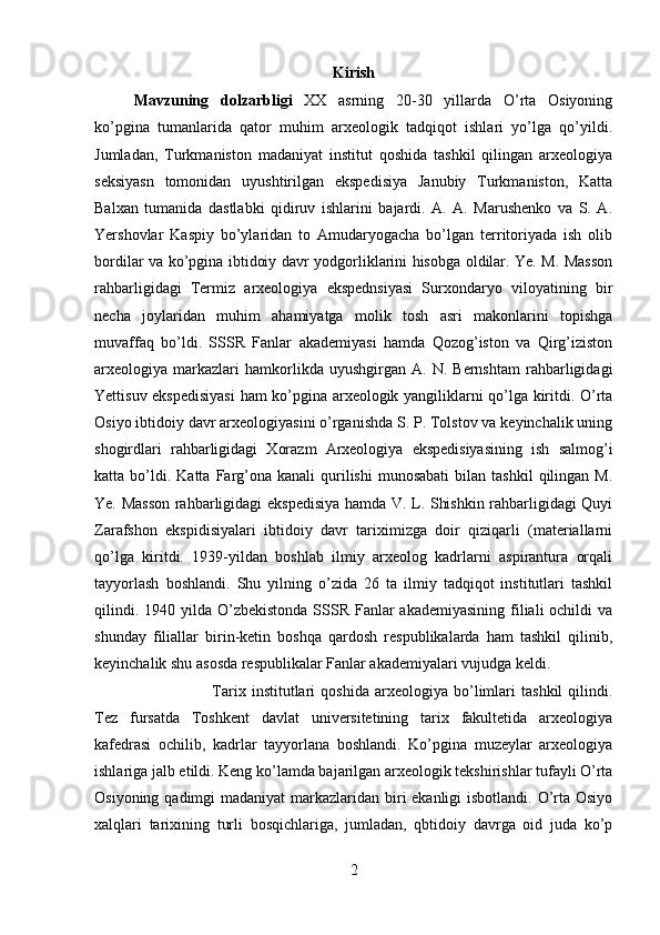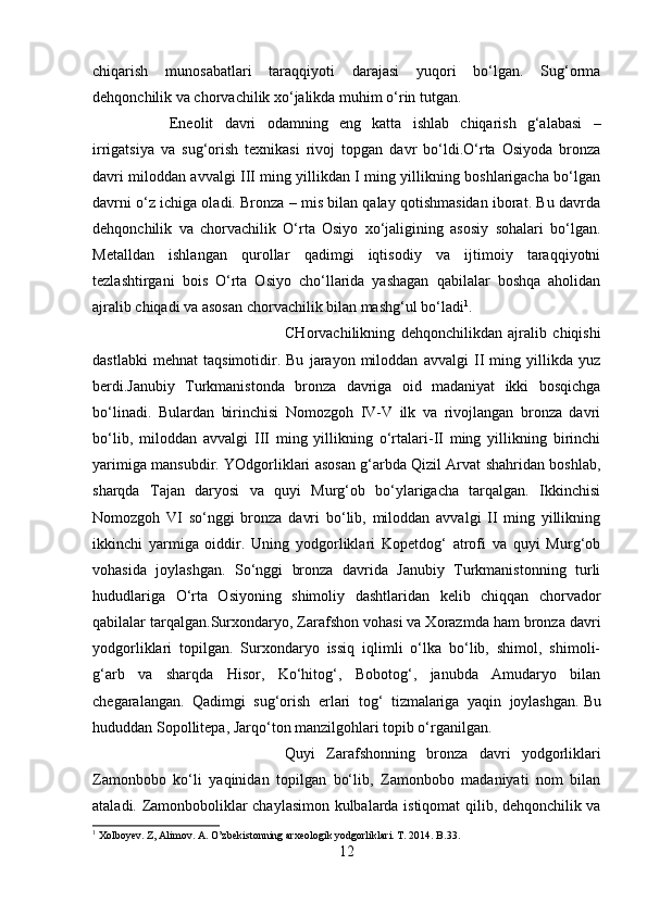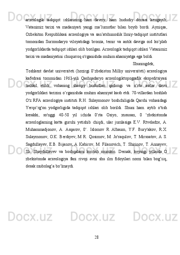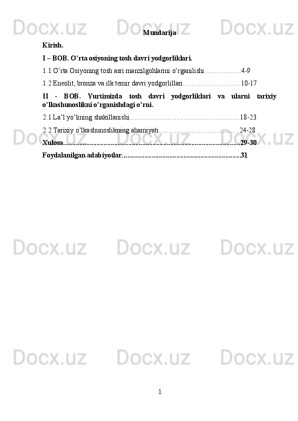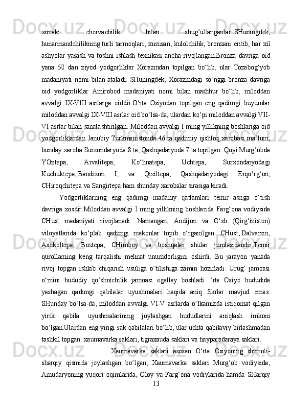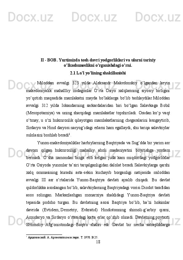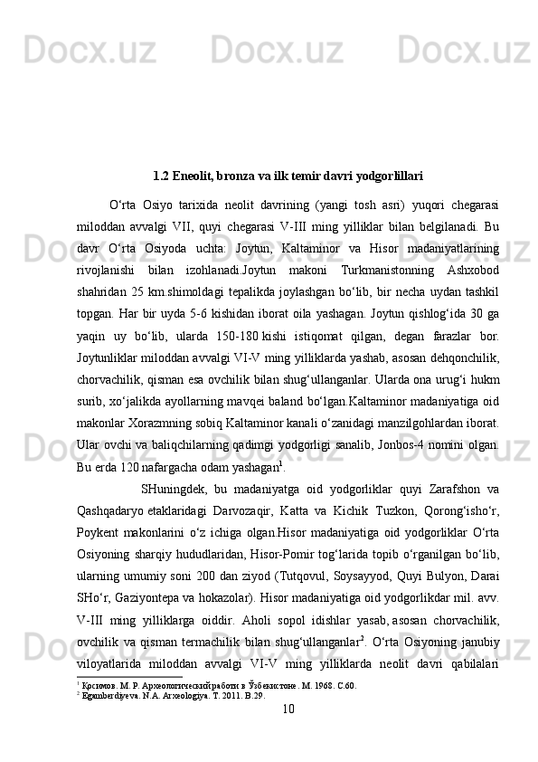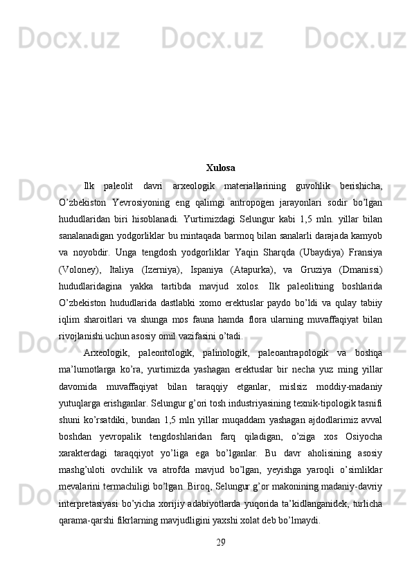 Tosh davri yodgorliklari va ularni tarixiy o’lkashunoslikni o’rganishdagi o’rni