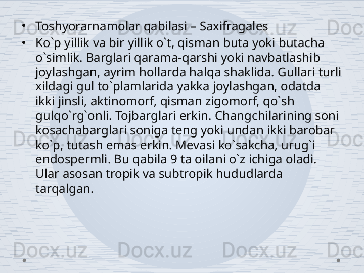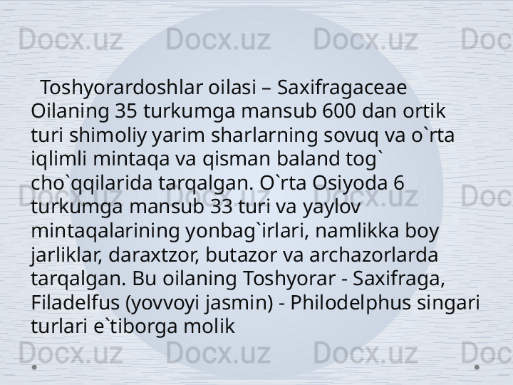 tarqalgan. Bu oilaning Toshyorar - Saxifraga,