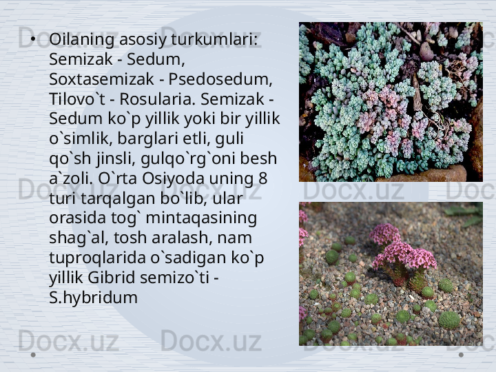 Semizakdoshlar oilasi - Crassulaceae Tarkibida yer