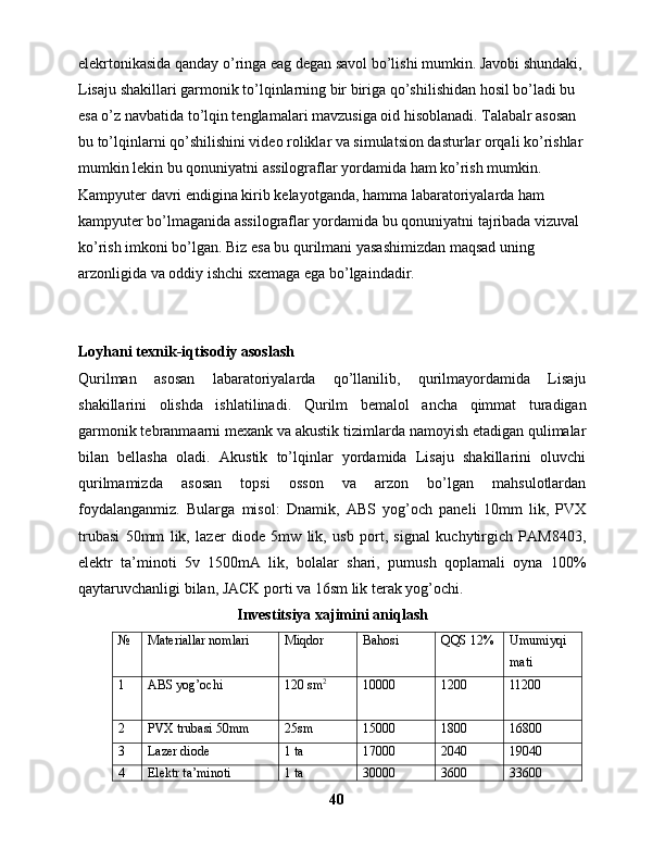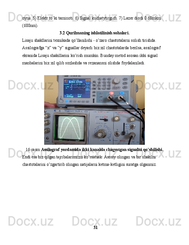 Tovush to'lqinlari yordamida lazer nurini tebranishidan Lisaju trektoriyasi ta'svirini hosil qilish