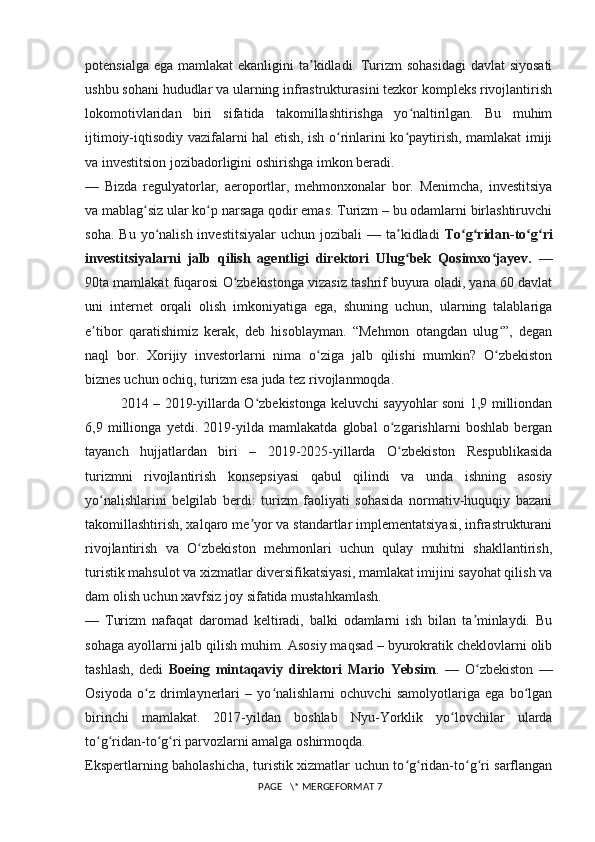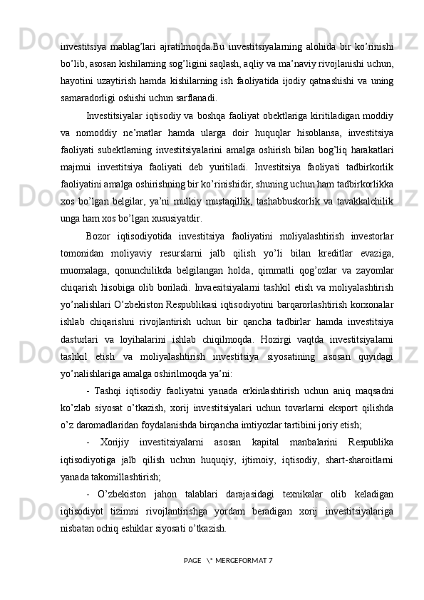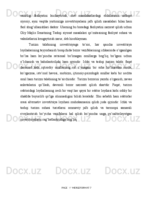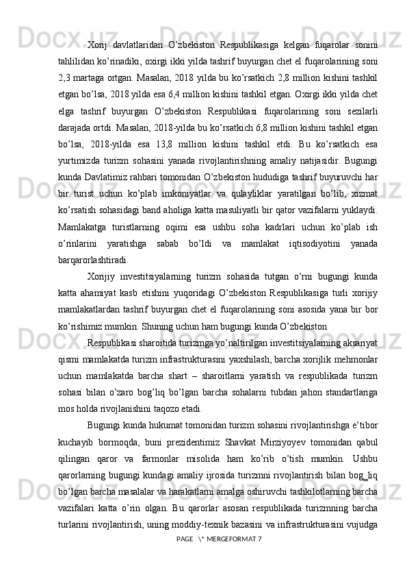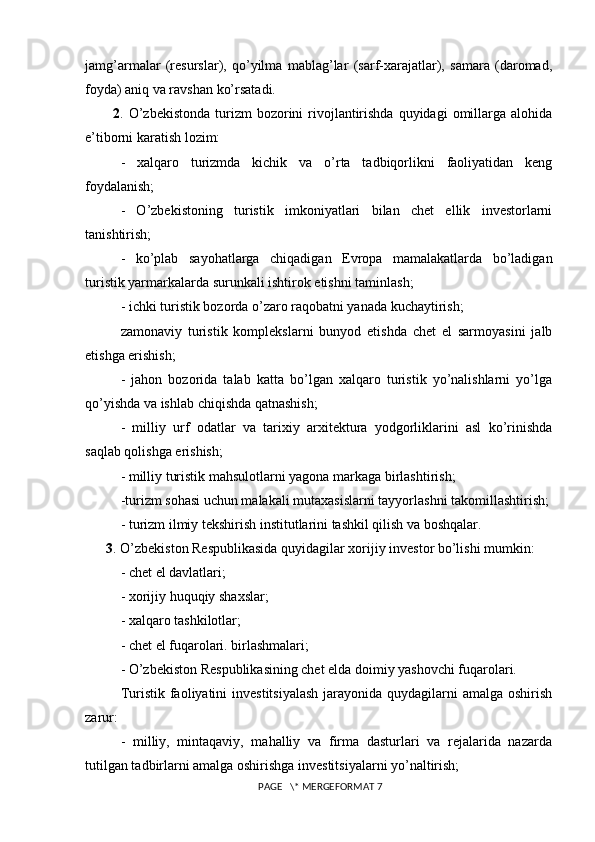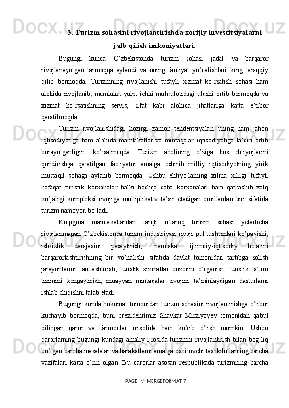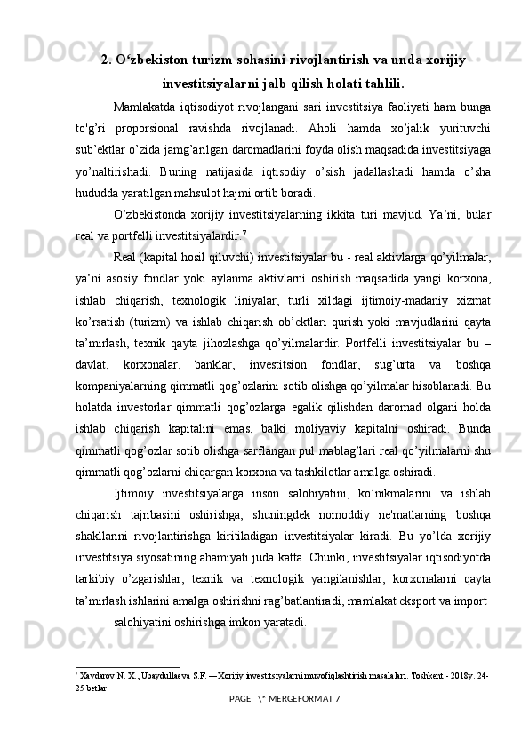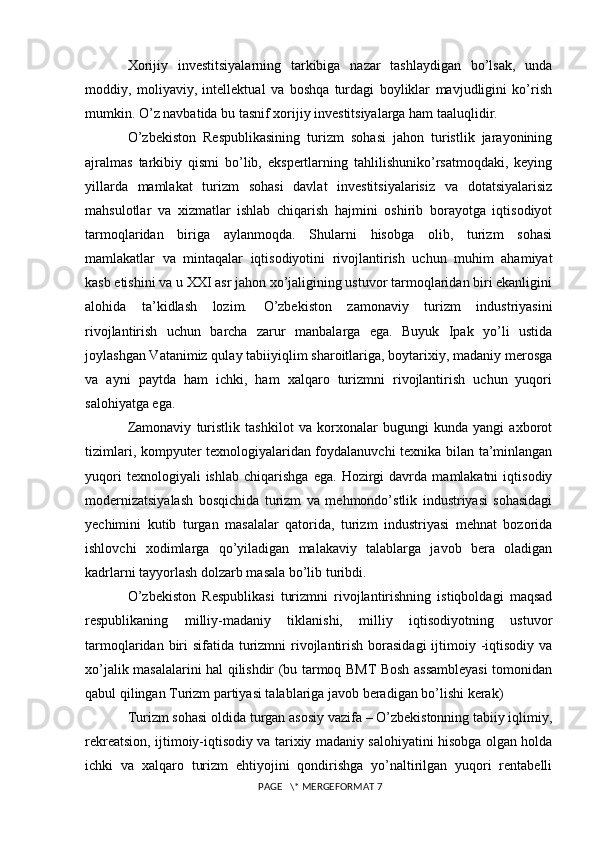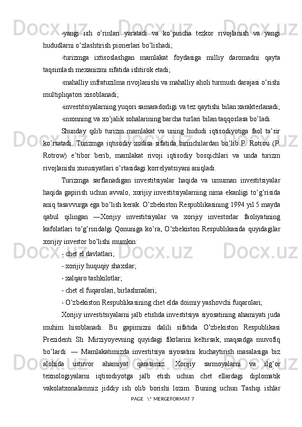 Turizm sohasini rivojlantirishda xorijiy investitsiyalarning o’rni