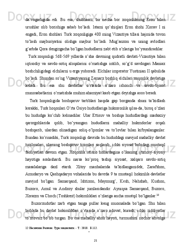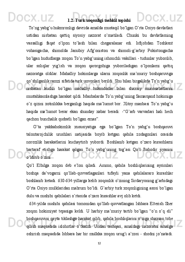 unvoniga   ega   bo’lgan.   Xitoy   manbalari   ma’lumotlariga   ko’ra,   turkiylar   xonni