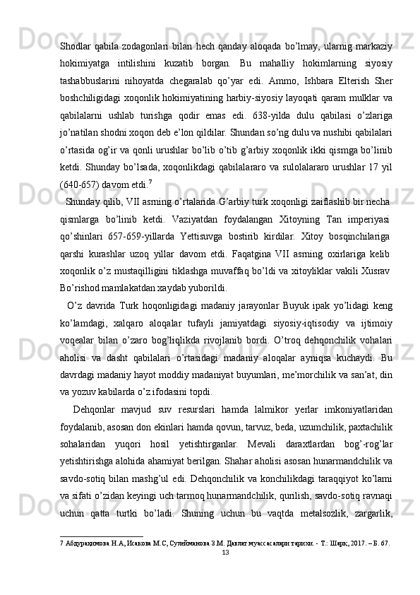 7  Абдураҳимова Н.А, Исакова М.С, Сулейманова З.М. Давлат муассасалари тарихи. - Т.: Шарқ, 2017. – Б. 67.