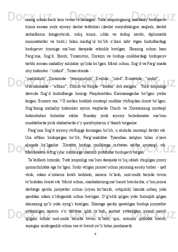 va xoqonliklardagi huquq tizimi ko rib chiqiladi. ʻ