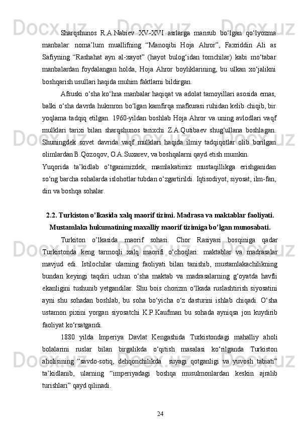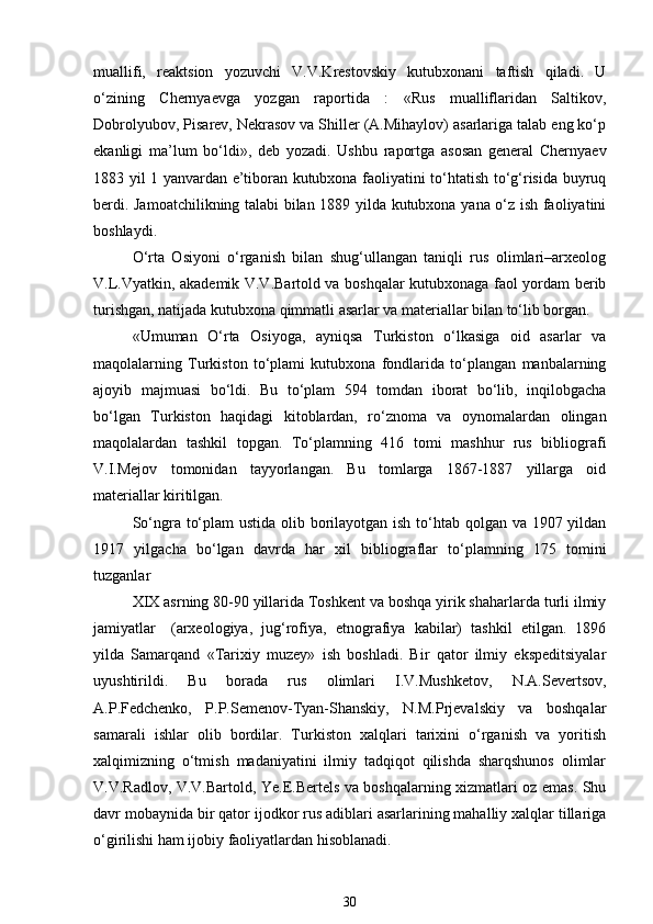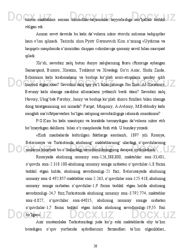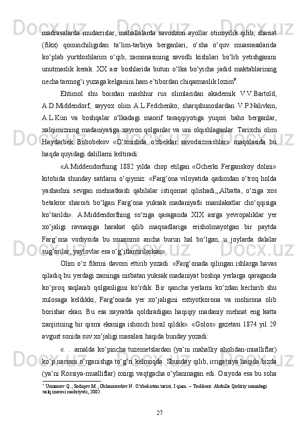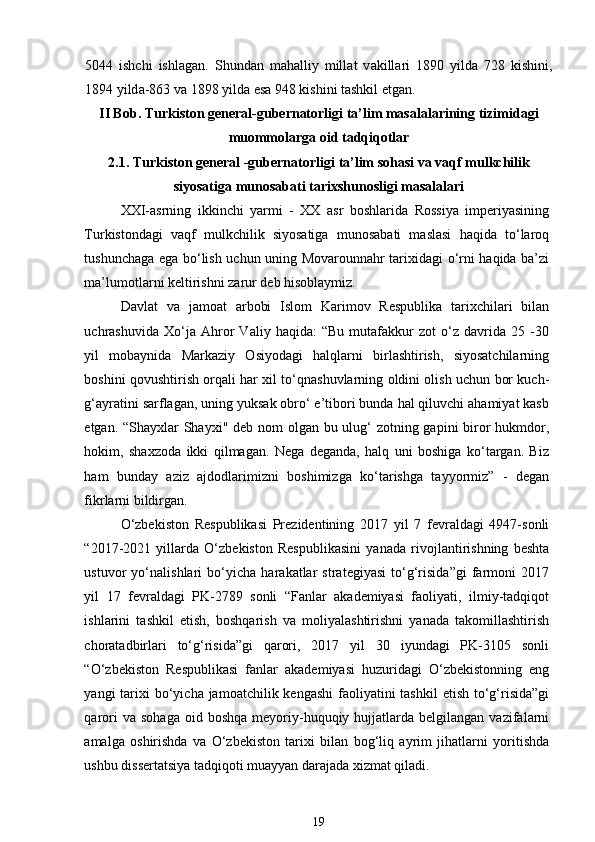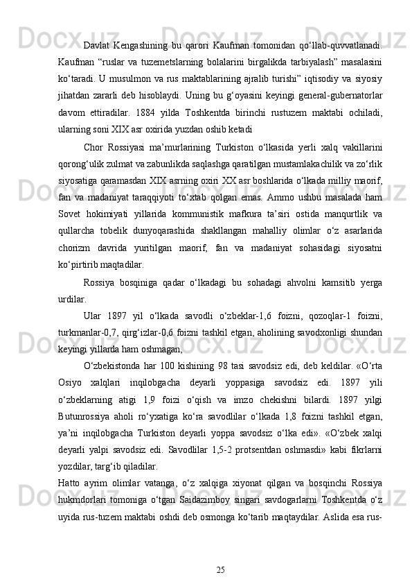 Turkiston general-gubernatorligi ta’lim masalalarining tizimidagi muommolarga oid tadqiqotlar