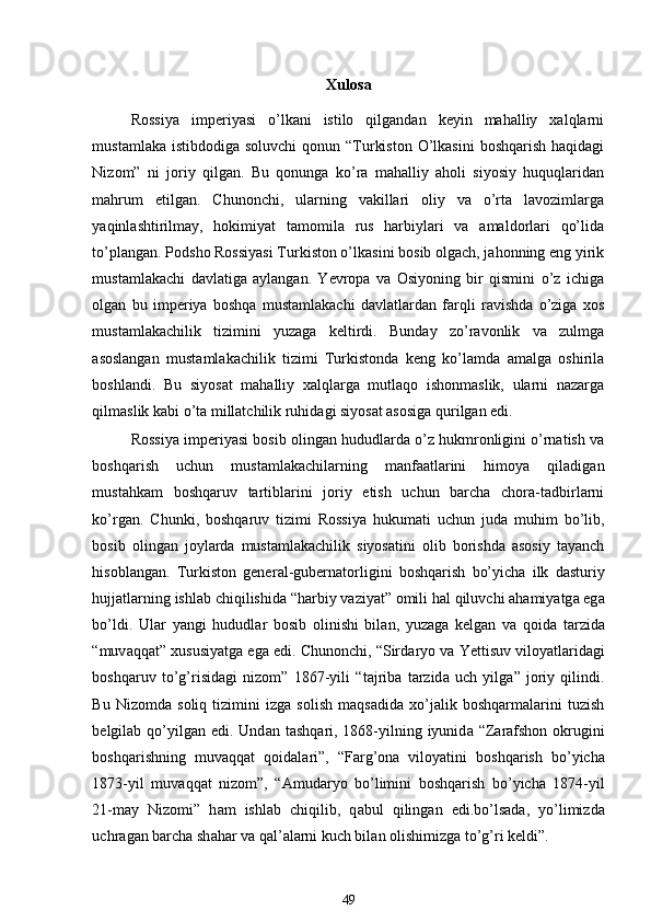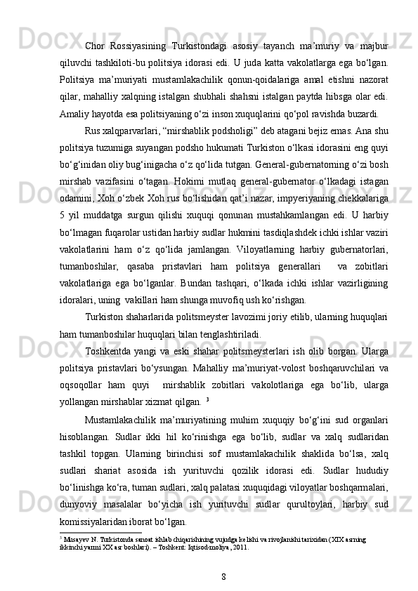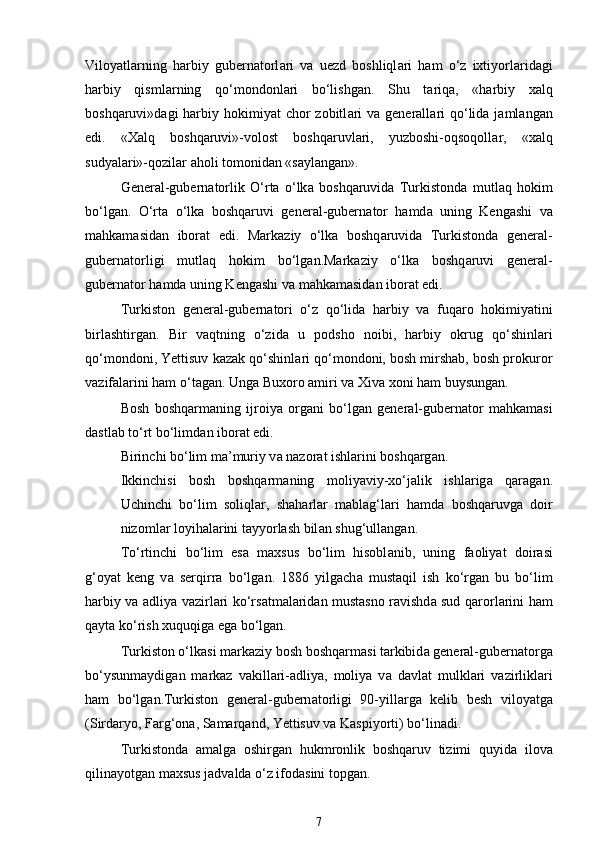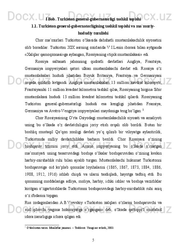 1.1. Turkiston general-gubernatorligining tashkil topishi va ma`muriy-hududiy tuzulishi 4