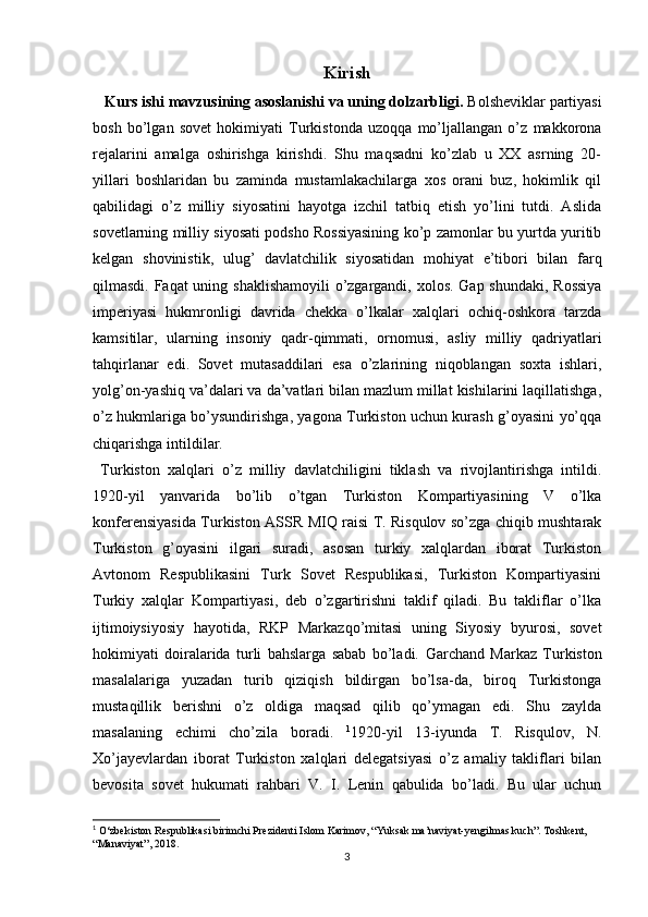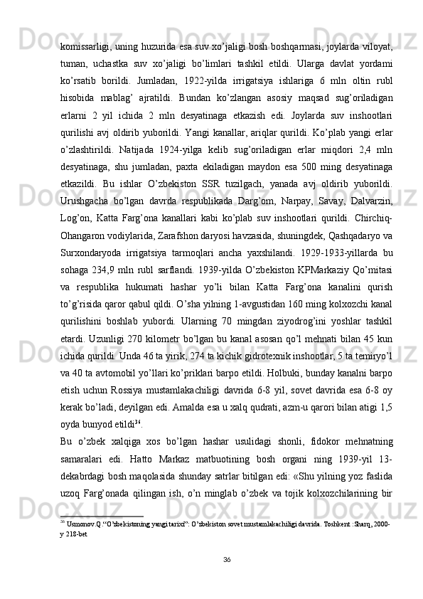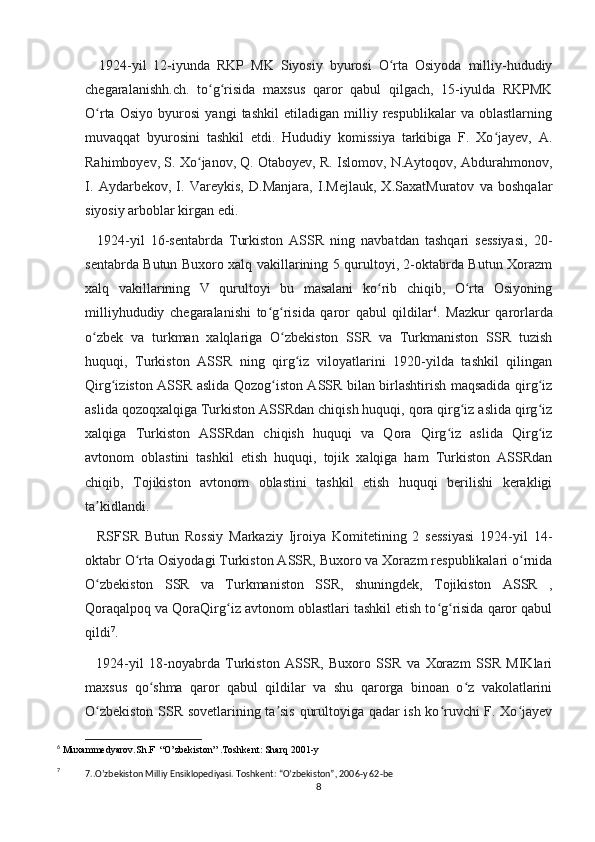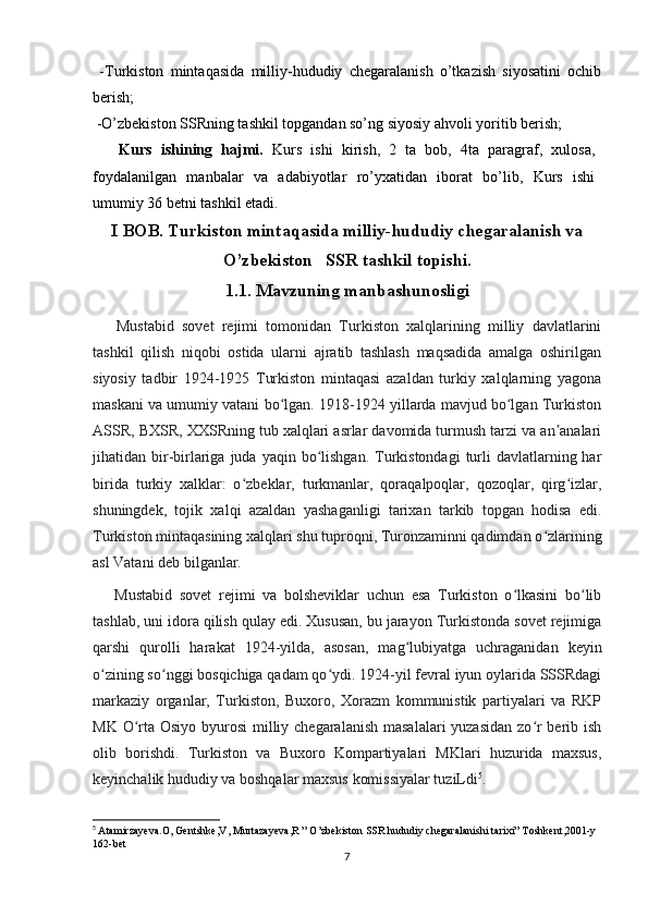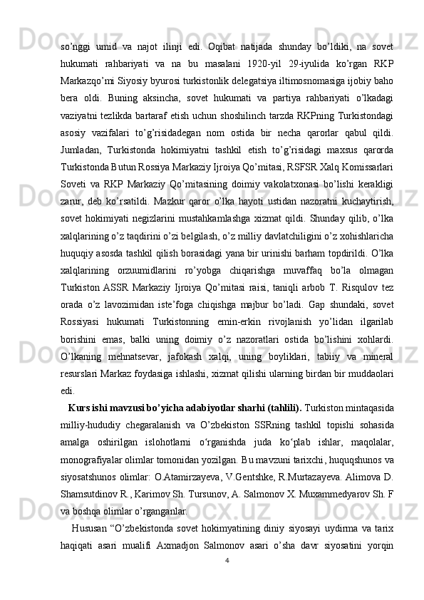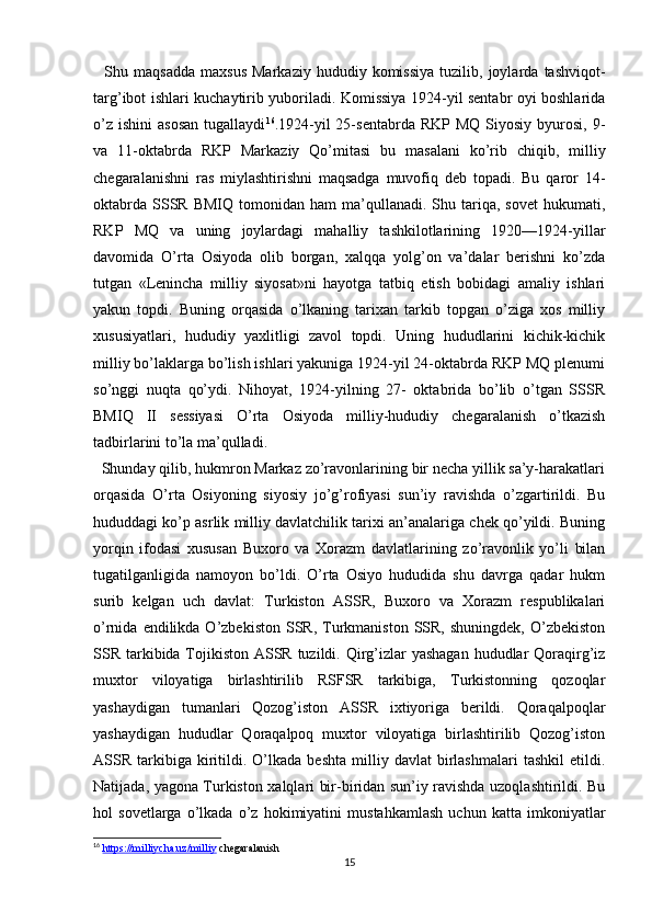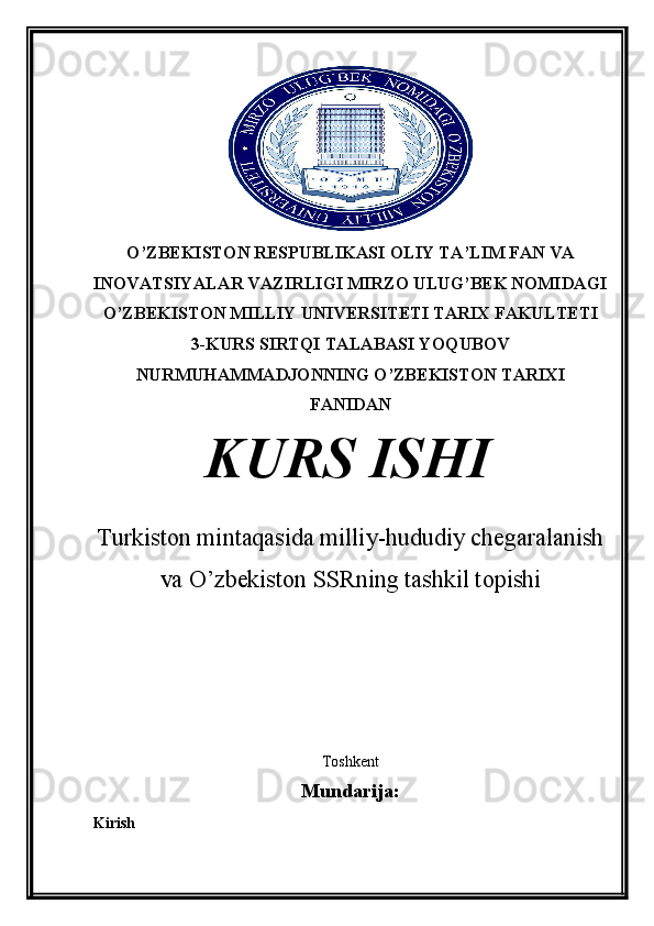 Turkiston mintaqasida milliy-hududiy chegaralanish va O’zbekiston SSRning tashkil topishi