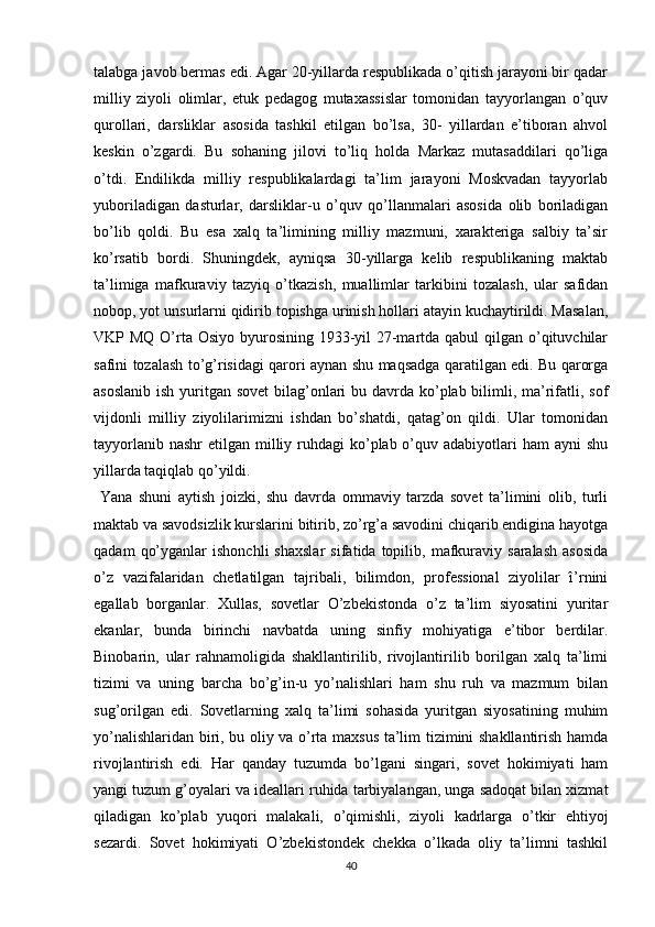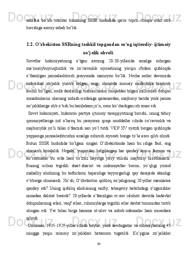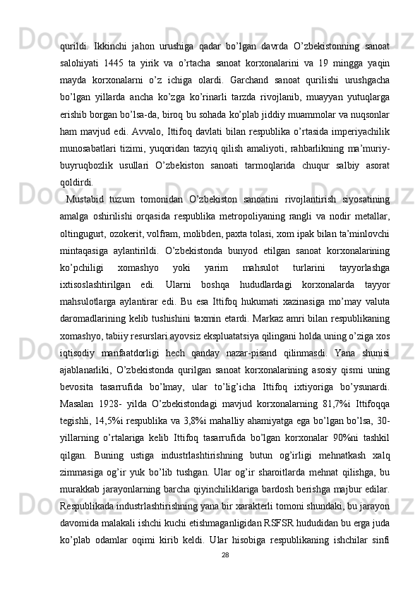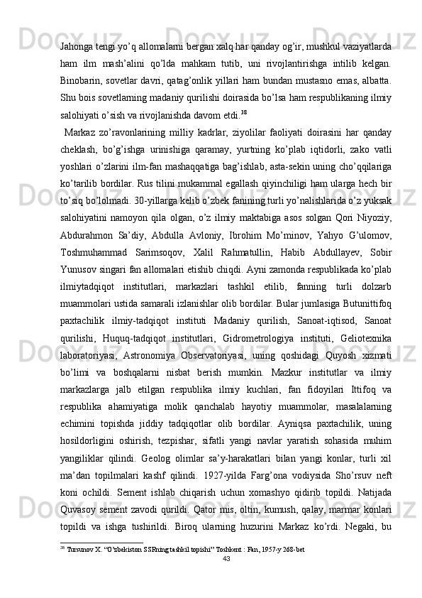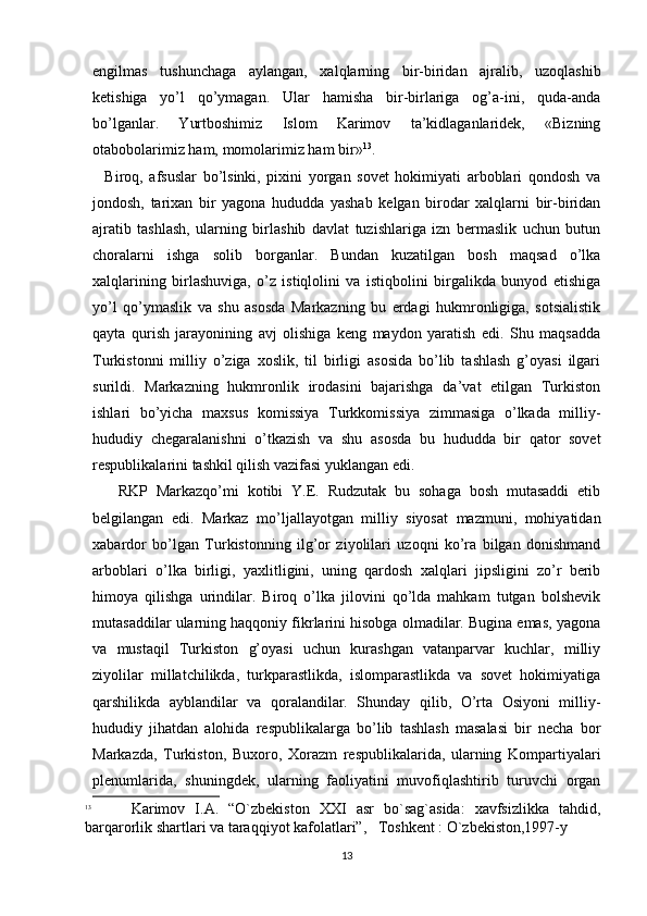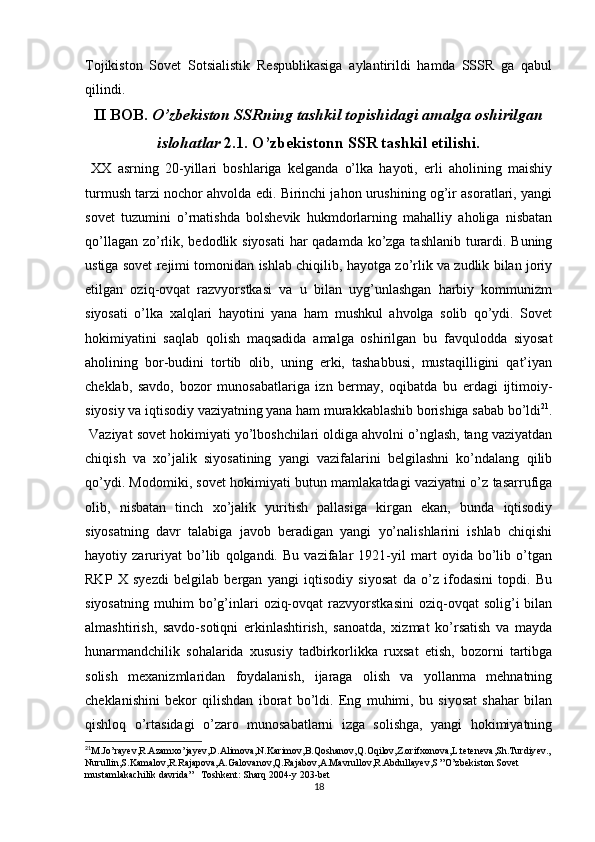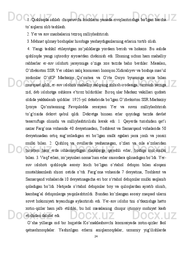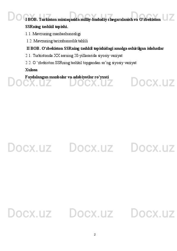 Turkiston mintaqasida milliy-hududiy chegaralanish va O’zbekiston SSRning tashkil topishi
