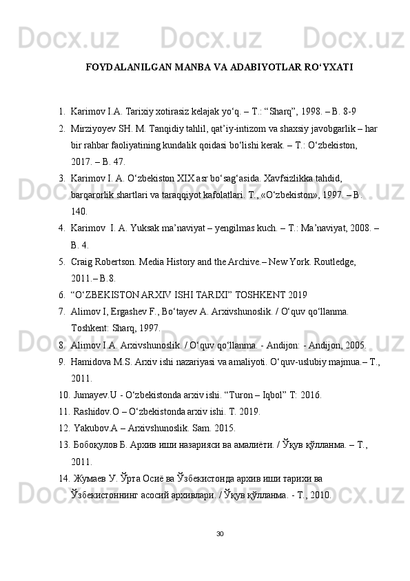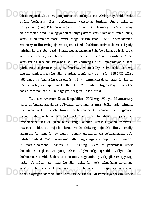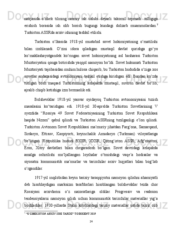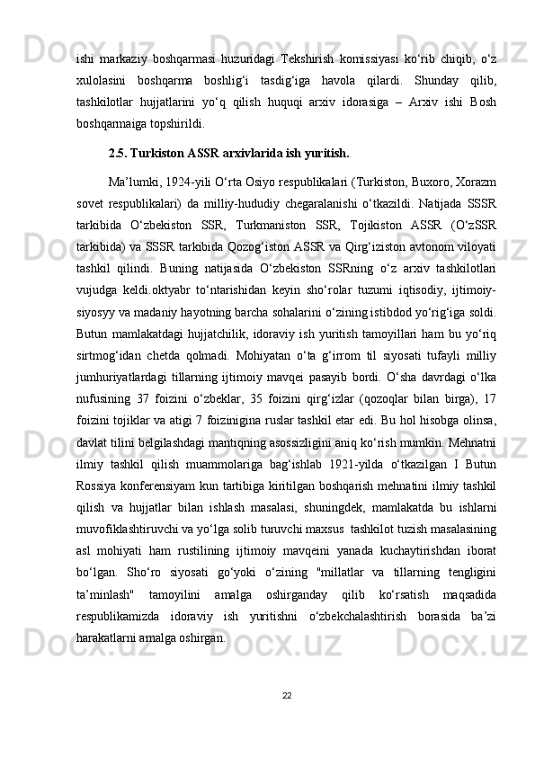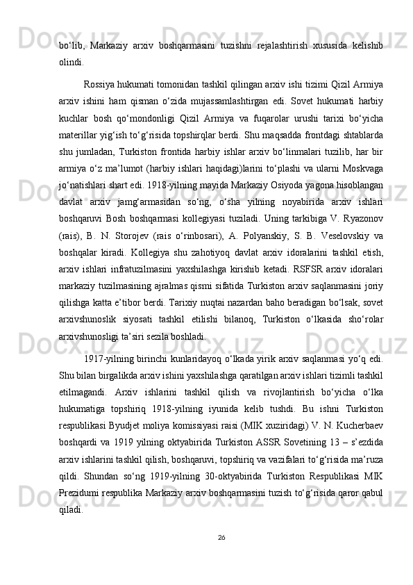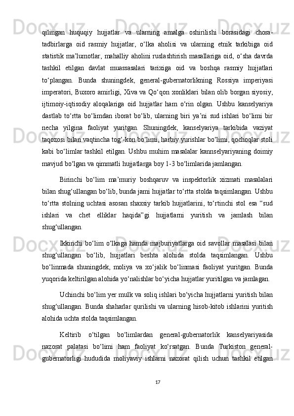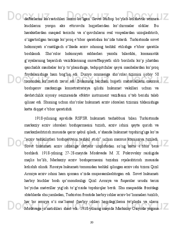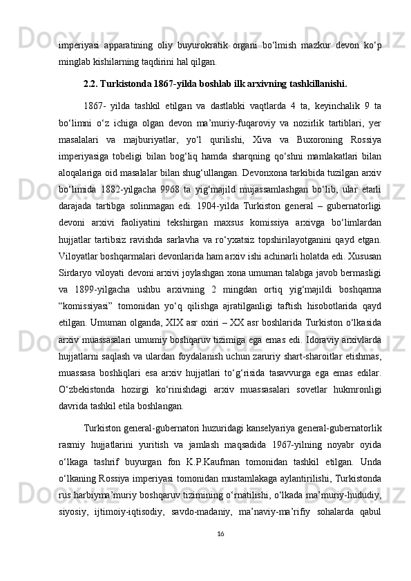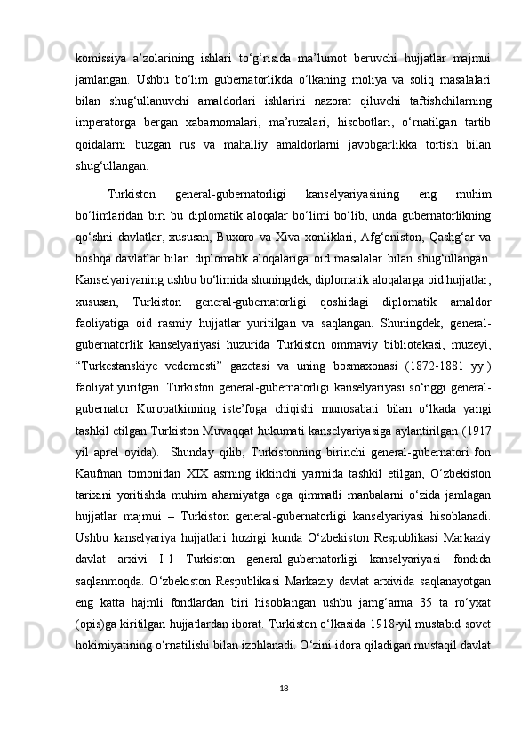 Turkistonda 1867-1917 yilarda arxiv ishi tarixi