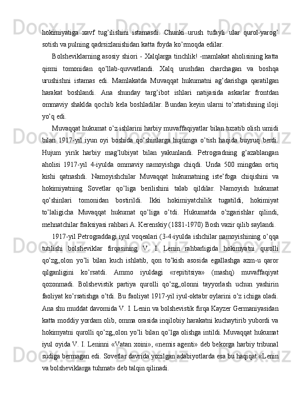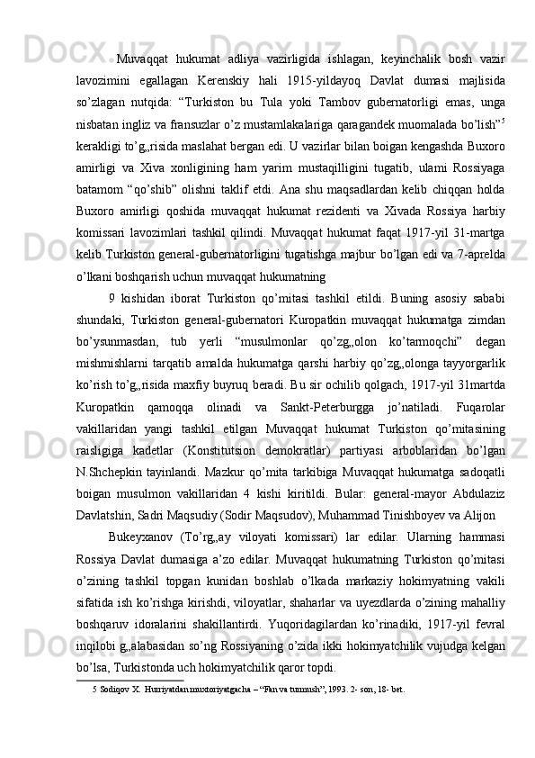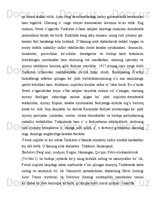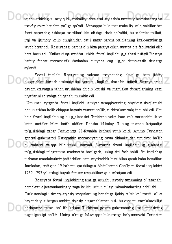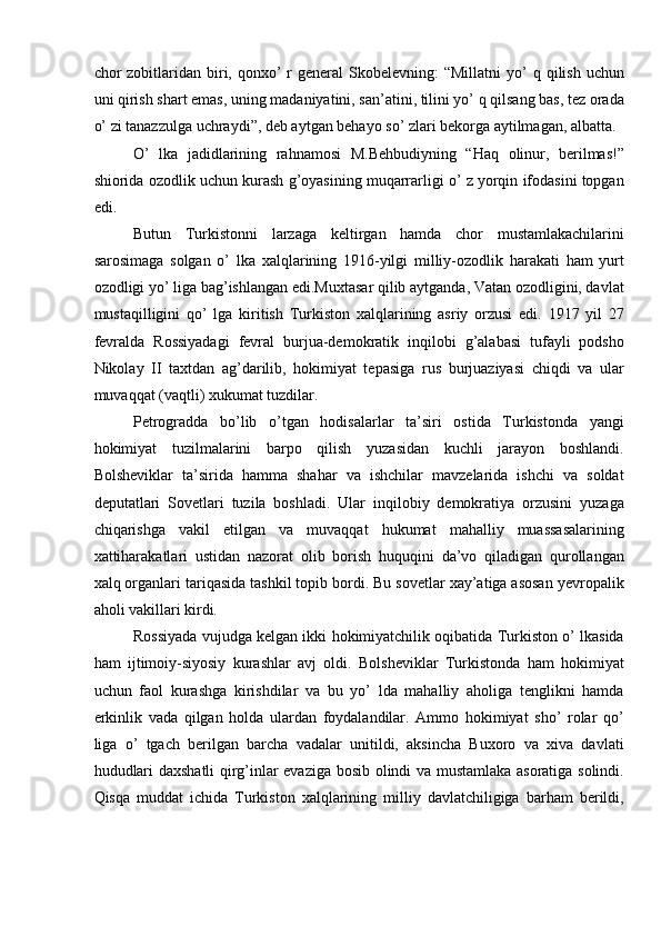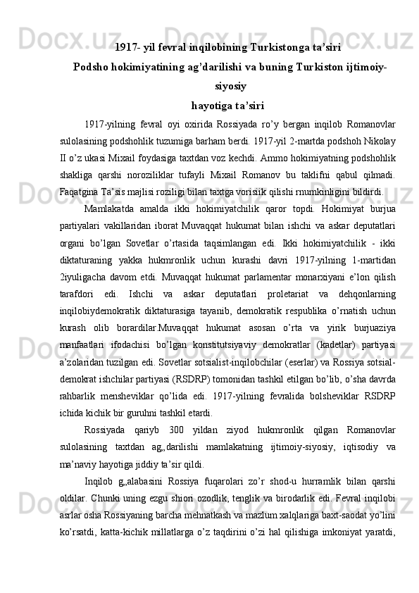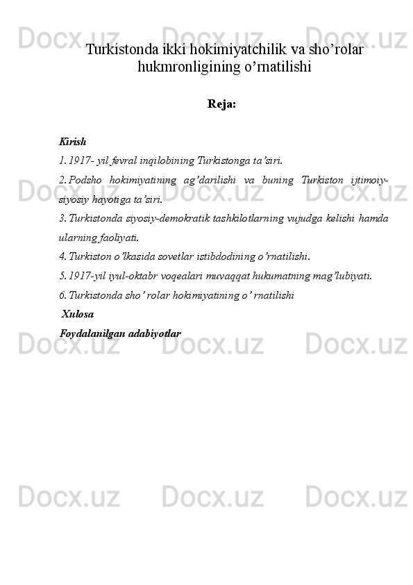 Turkistonda ikki hokimiyatchilik va sho’rolar hukmronligining o’rnatilishi