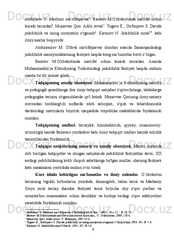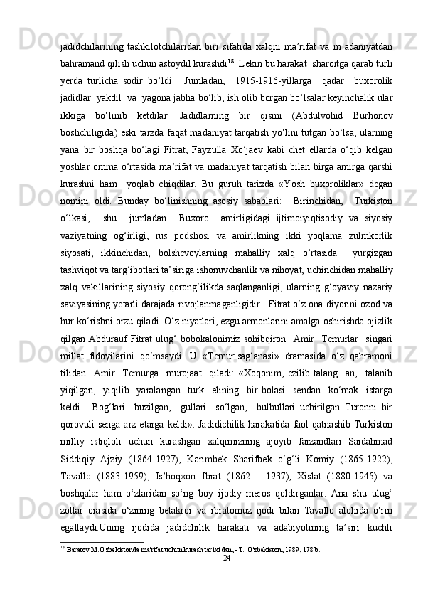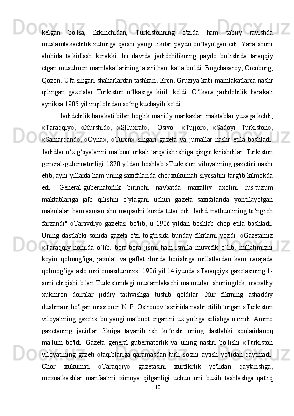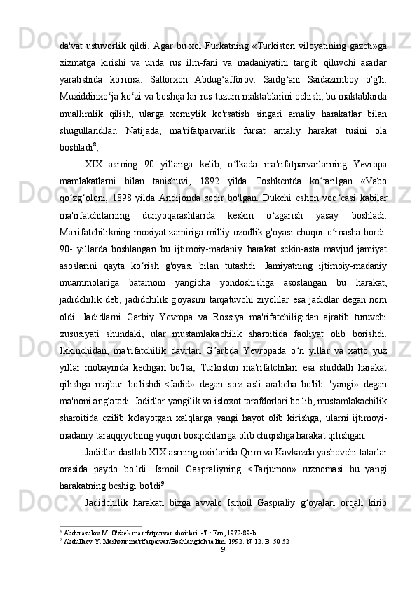 1.1. Turkiston oʻlkasida jadidchilik harakatini vujudga kelishi………………..…..6