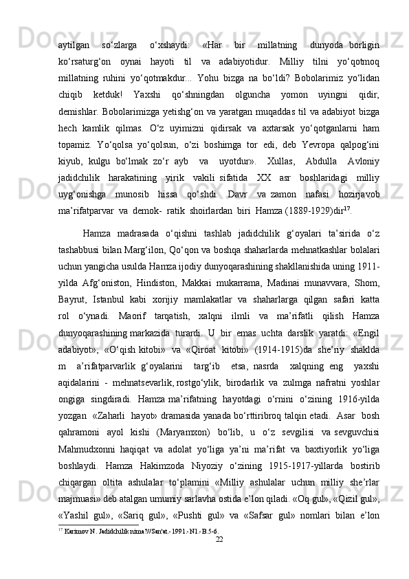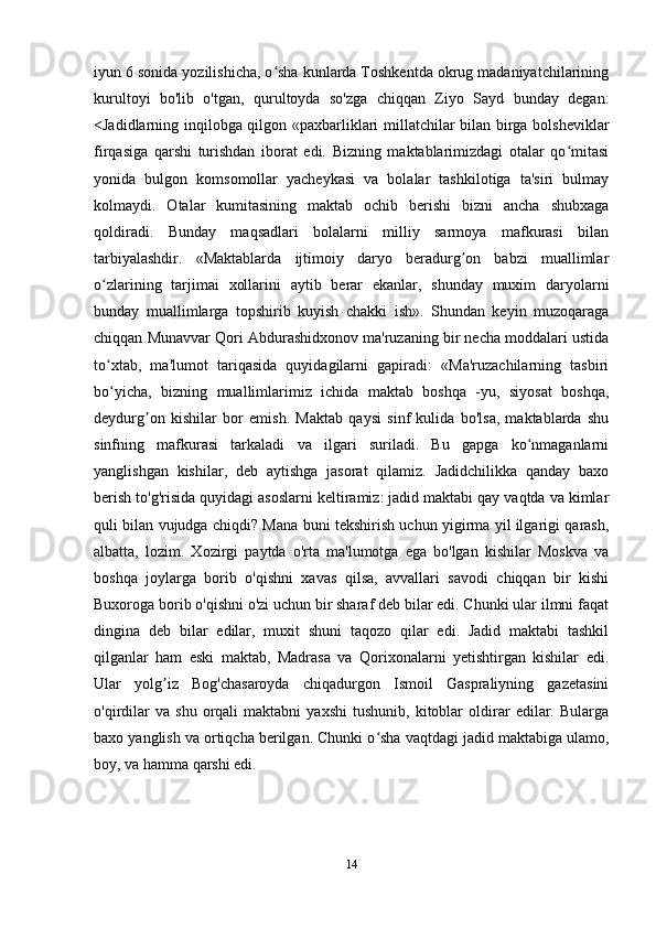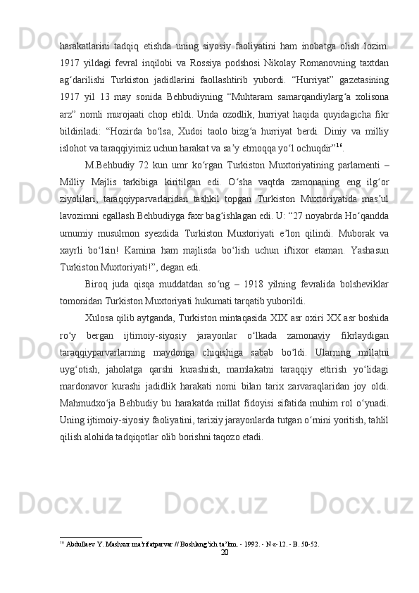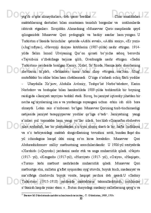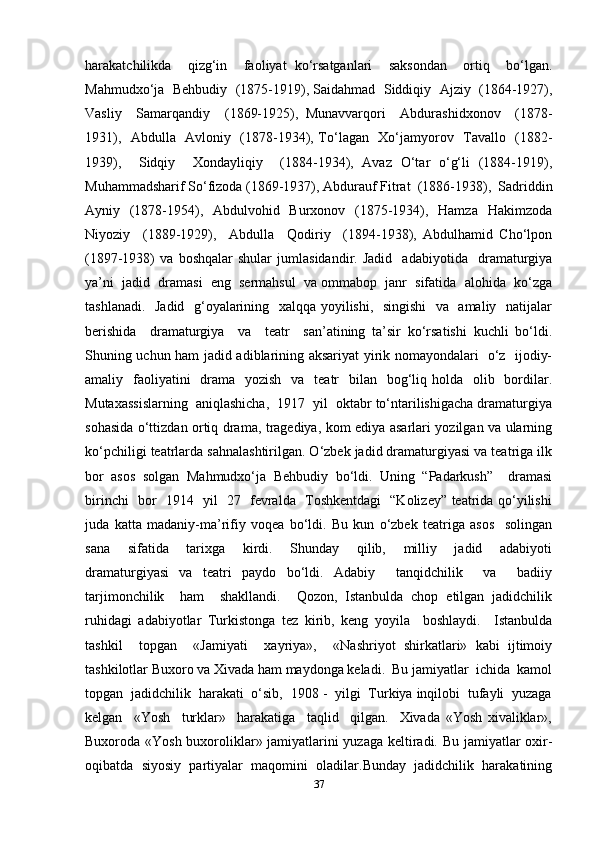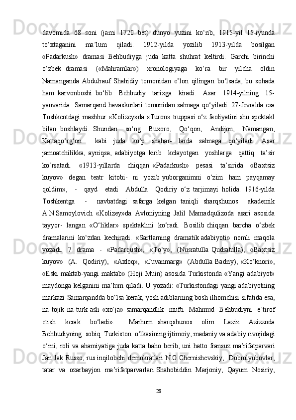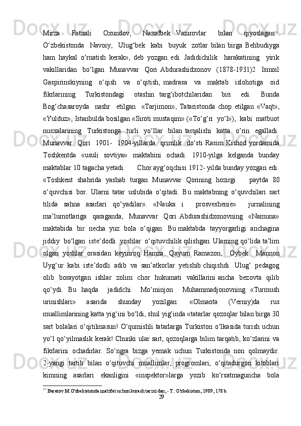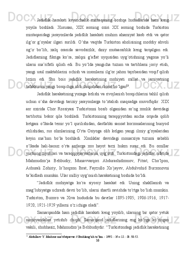 1.2.Behbudiy Samarqand jadidlarining yirik namoyondasi……………………….13