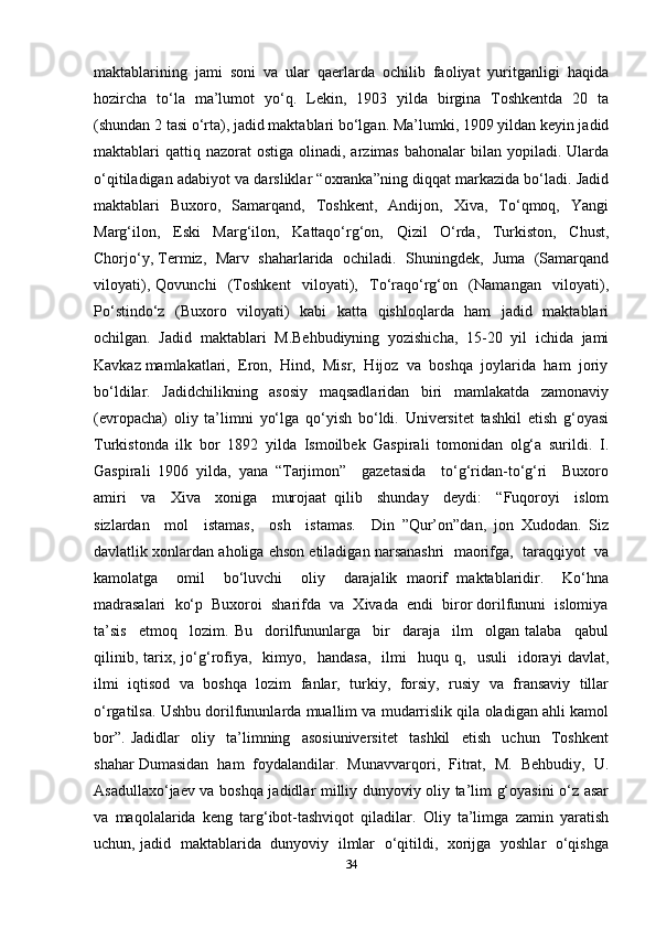 2.2 Samarqandnda jadidchilik harakatining maorif, matbuot va adabiyot