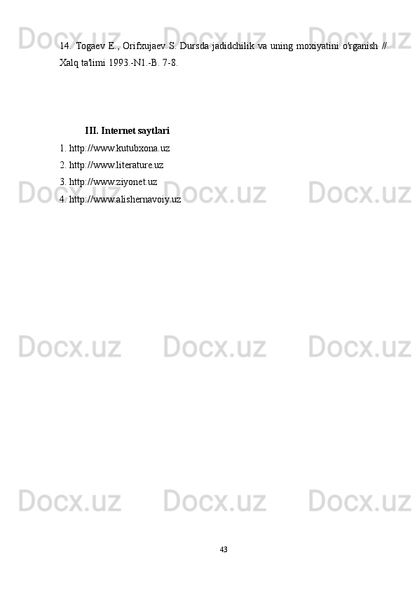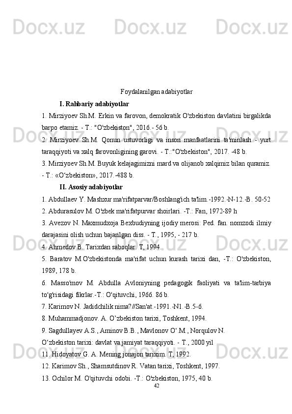 FOYDALANILGAN ADABIYOTLAR RUYXATI…………………………….37