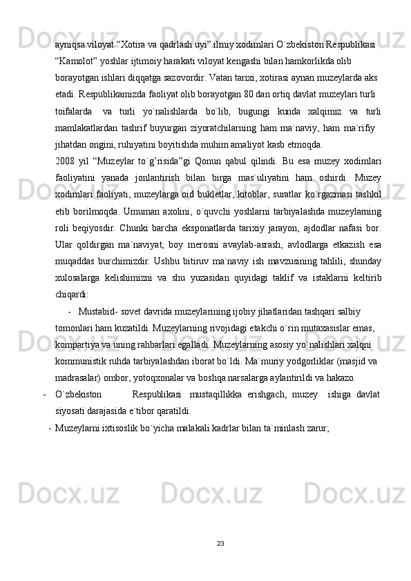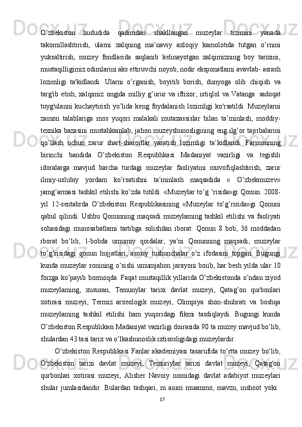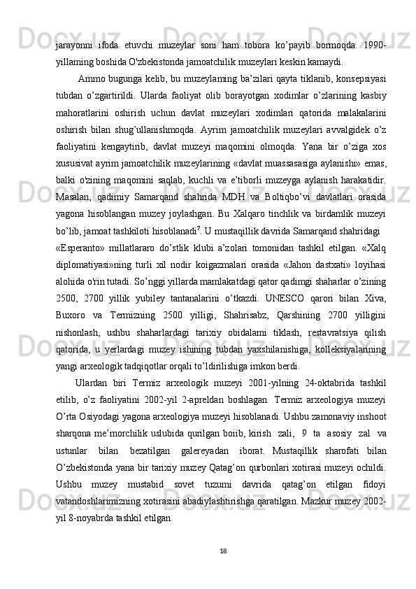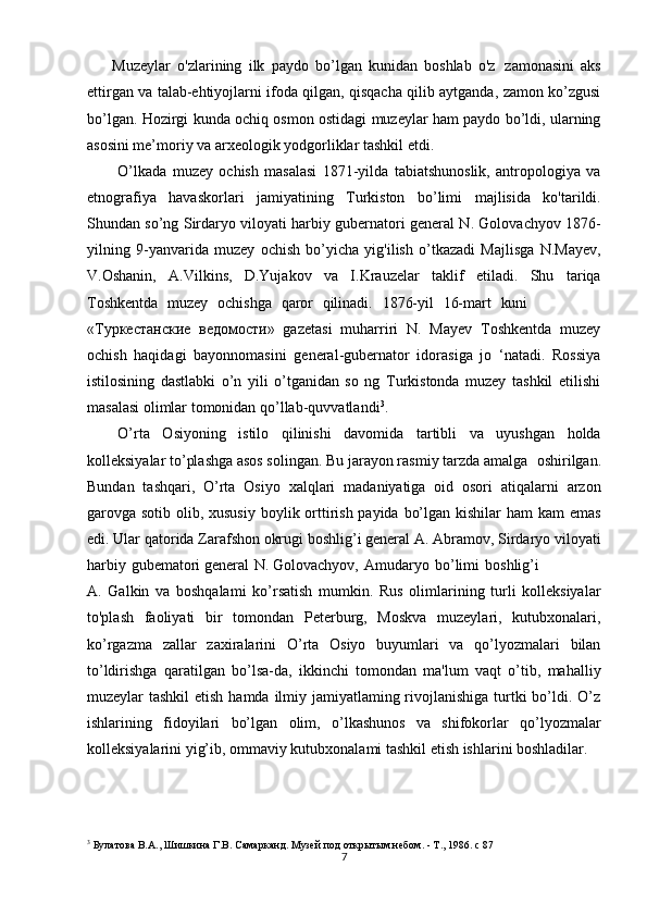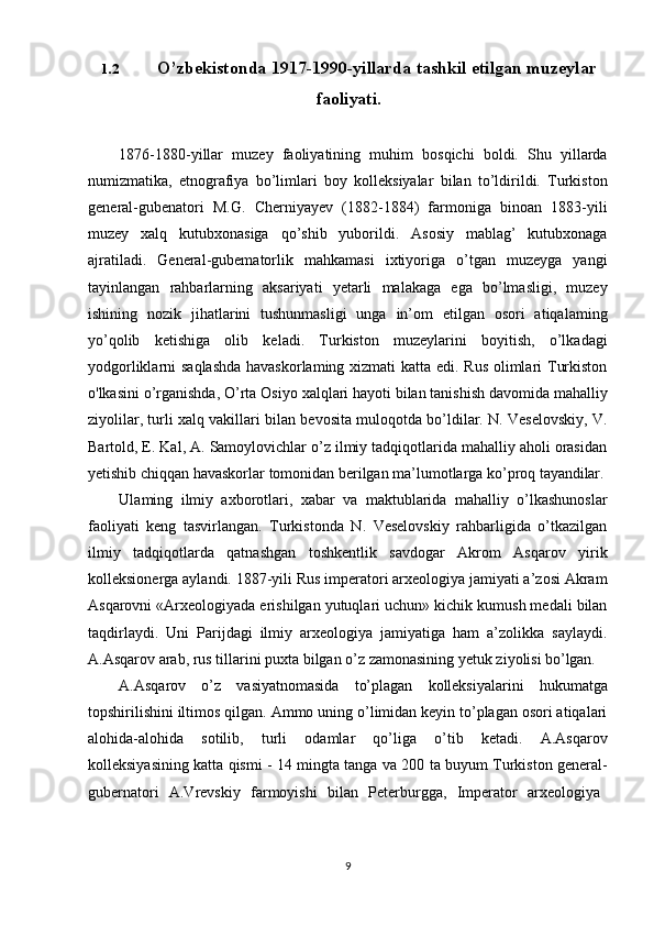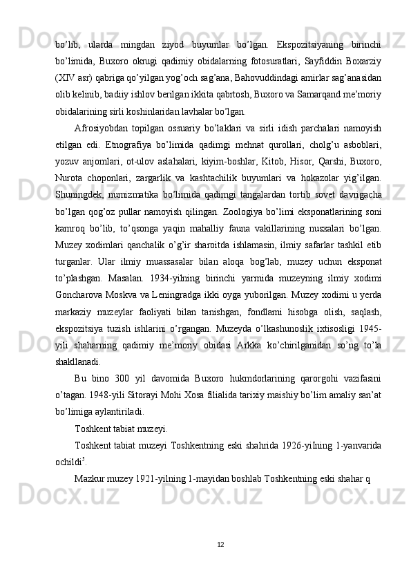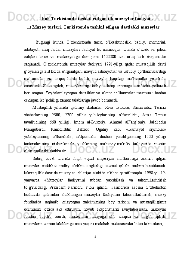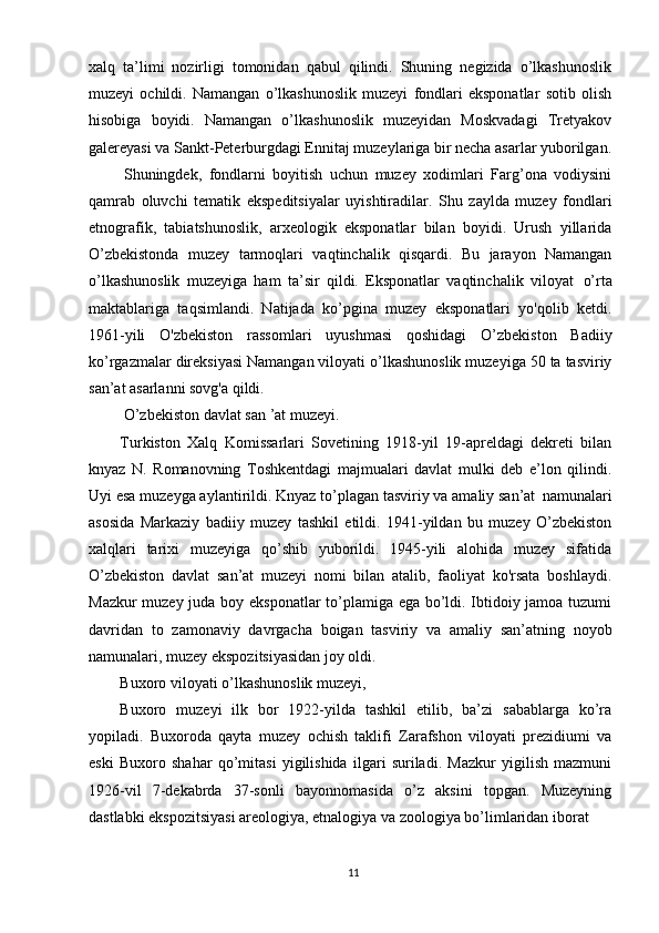 Turkistonda tashkil etilgan ilk muzeylar faoliyati