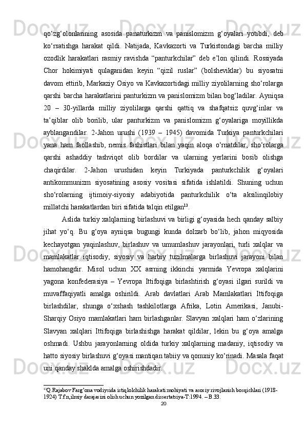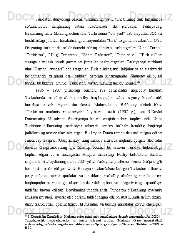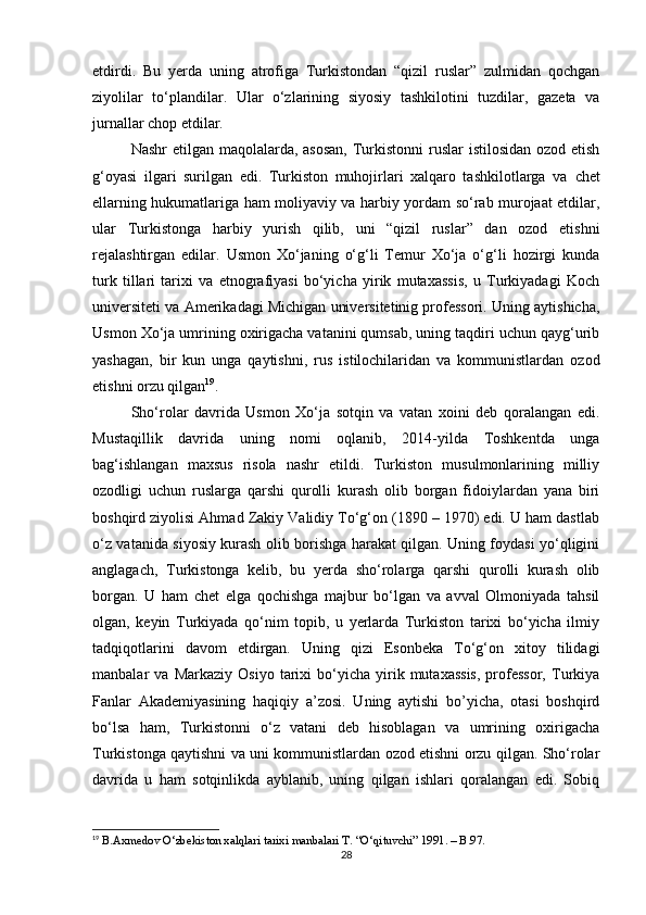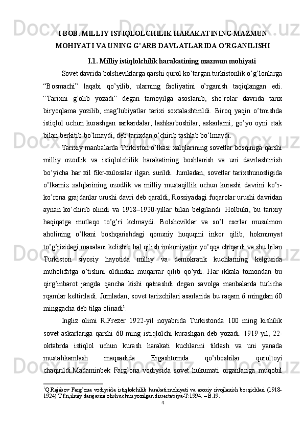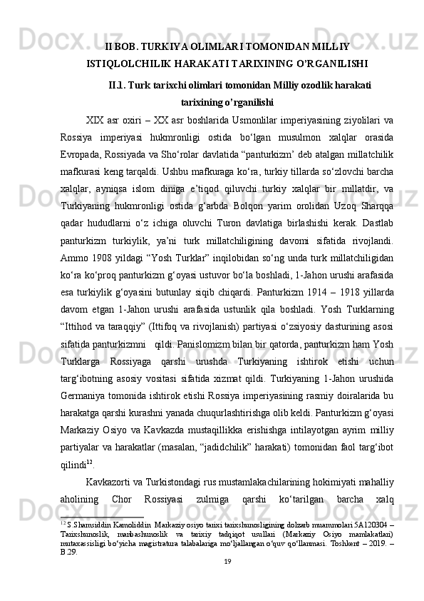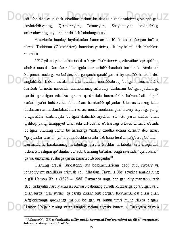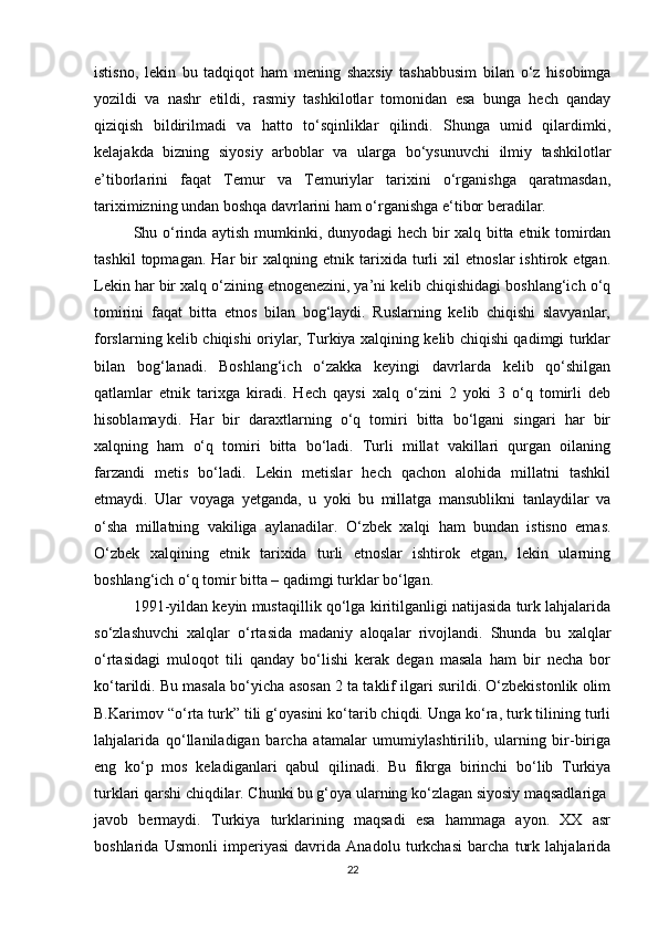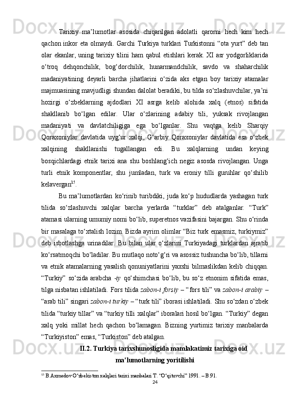 «Turkiya olimlari tomonidan milliy istiqlolchilik harakati tarixining o’rganilish