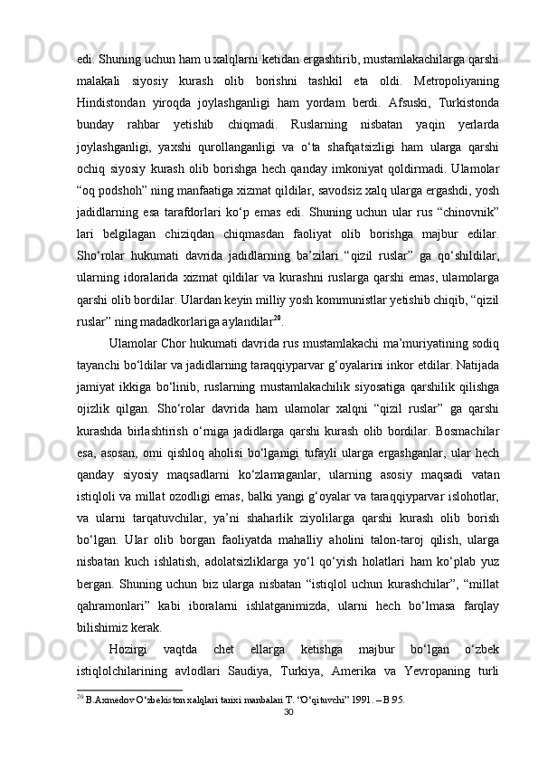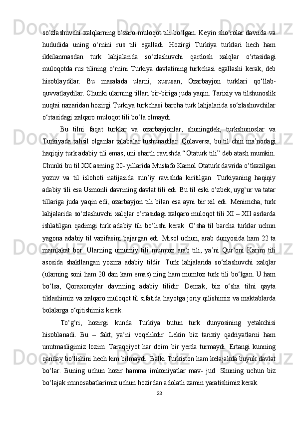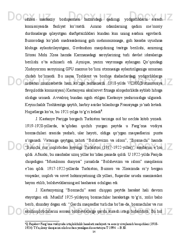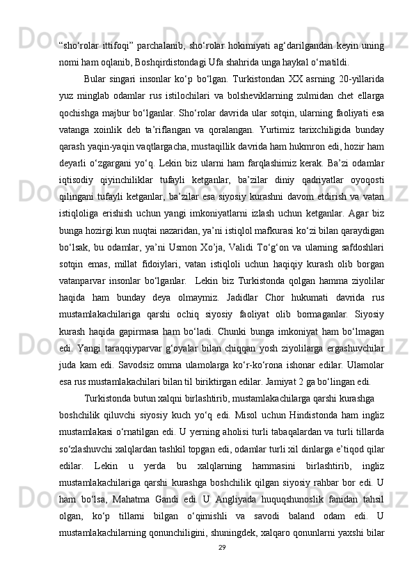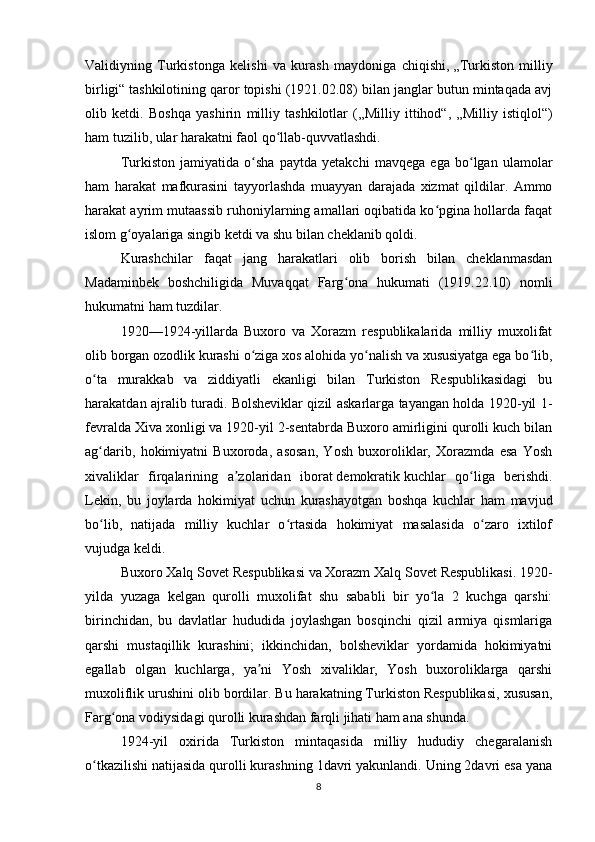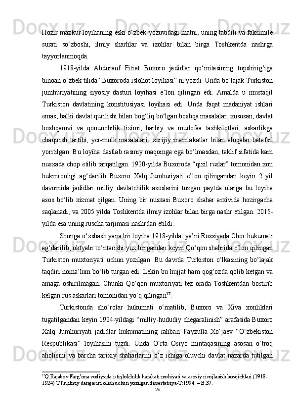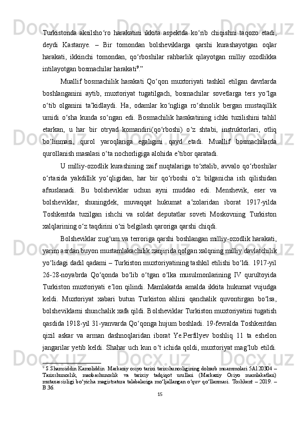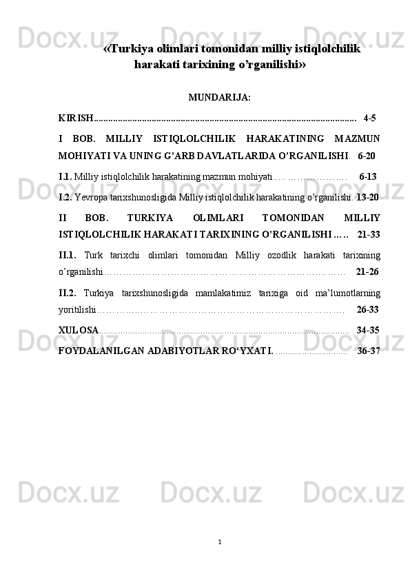 «Turkiya olimlari tomonidan milliy istiqlolchilik harakati tarixining o’rganilish