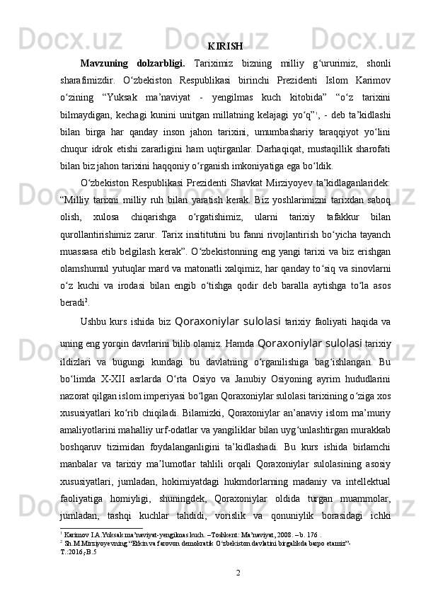 ziddiyatlarni   ham   ko rib   chiqiladi.   Kurs   ishida   Qoraxoniylar   sulolasi   tarixiʻ