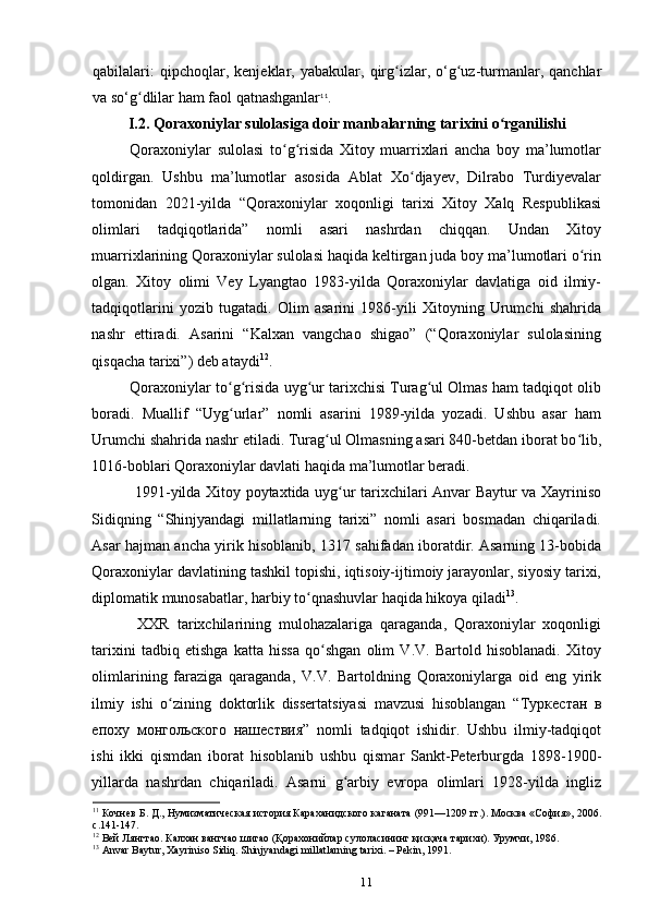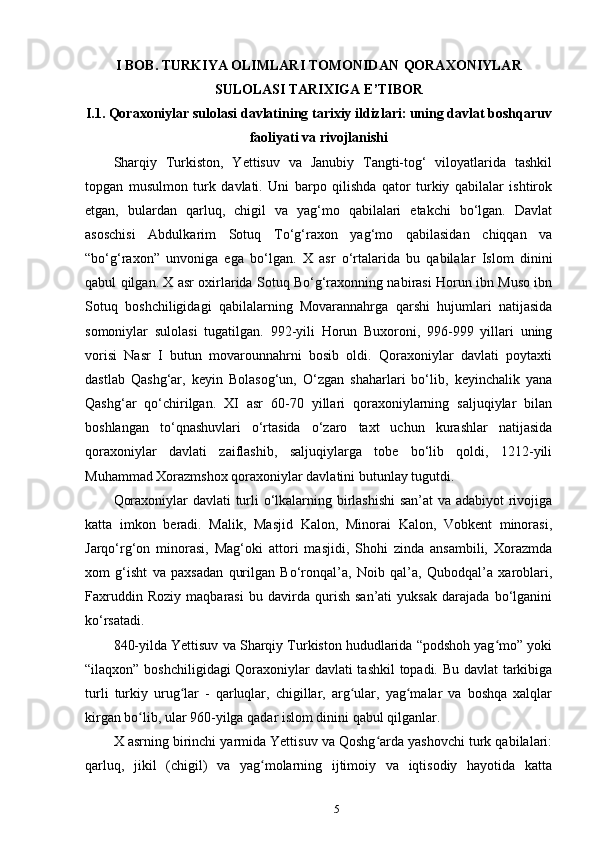 TURKIYA OLIMLARI TOMONIDAN QORAXONIYLAR DAVLATINING O‘RGANILISHI