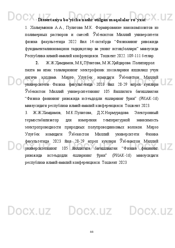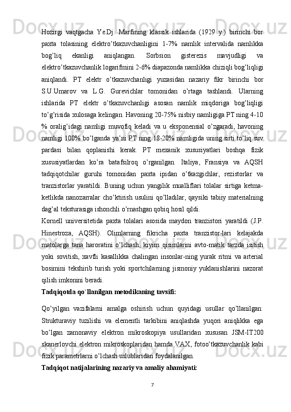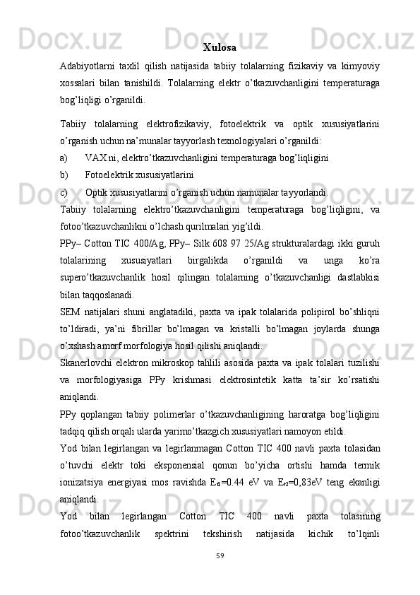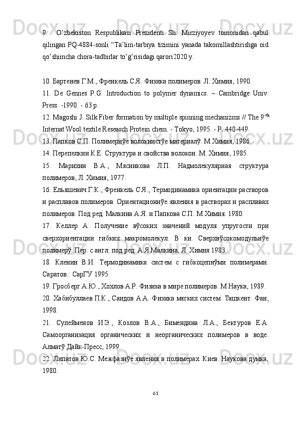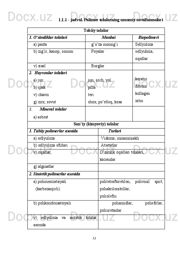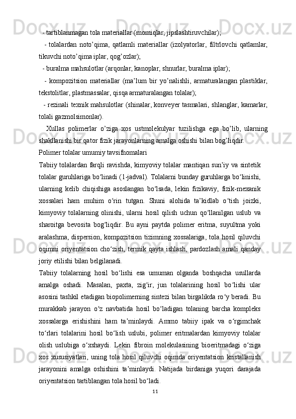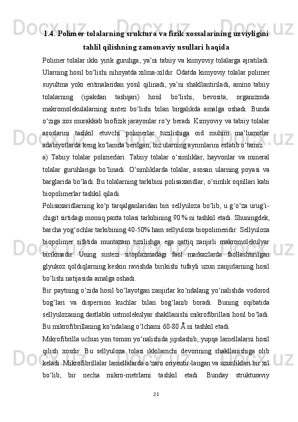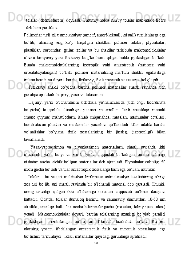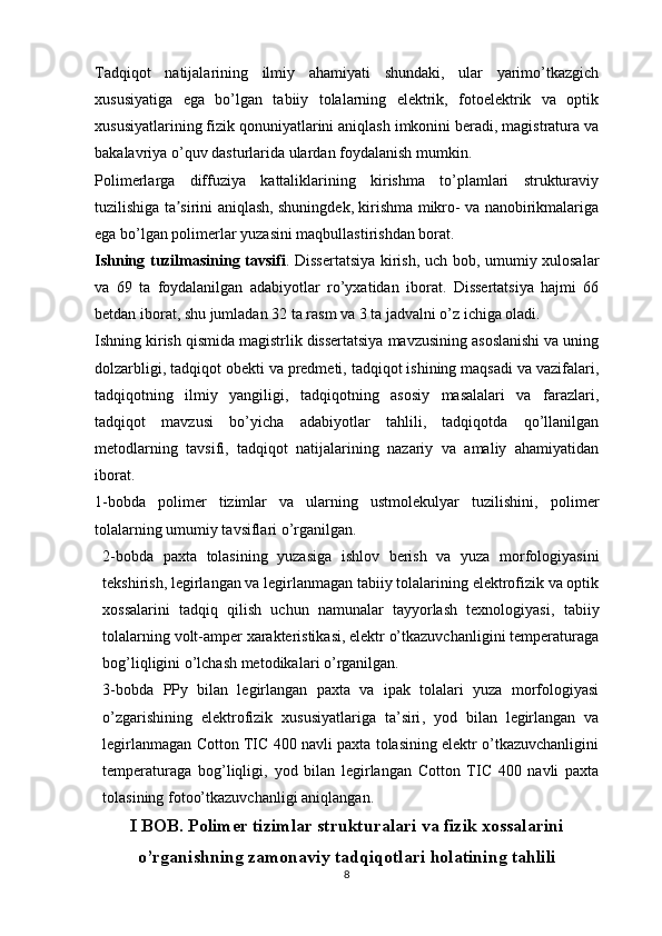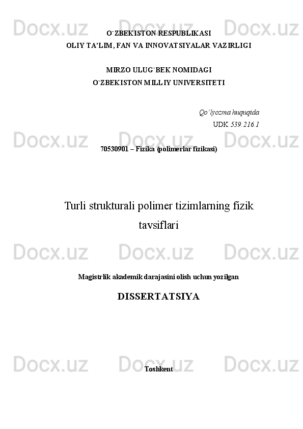 Turli strukturali polimer tizimlarning fizik tavsiflari
