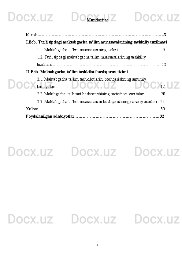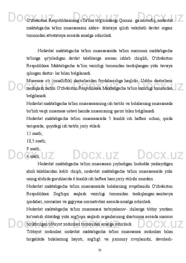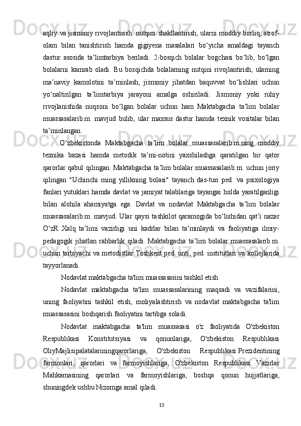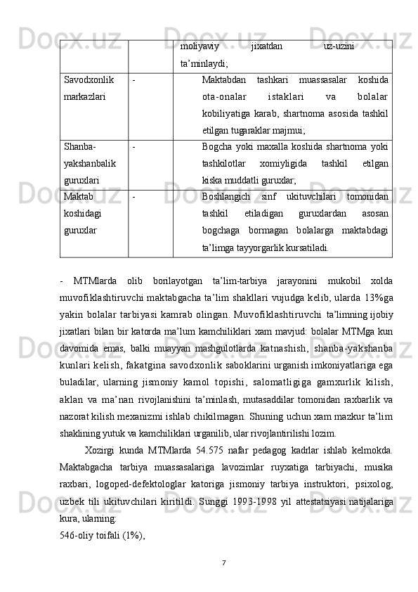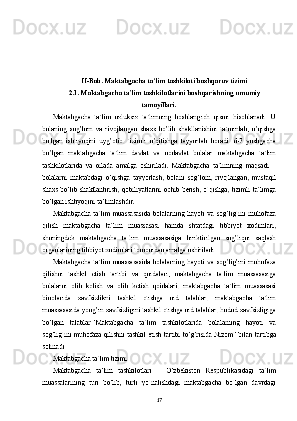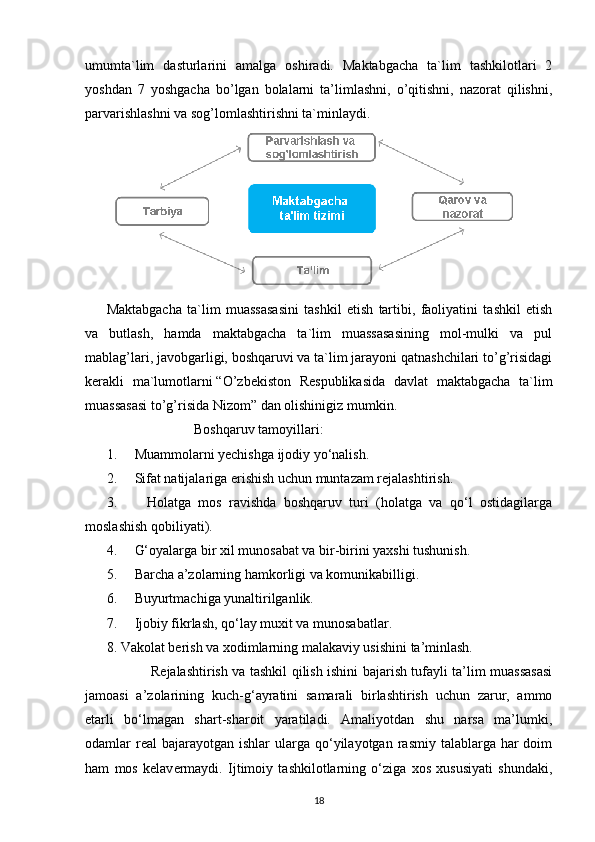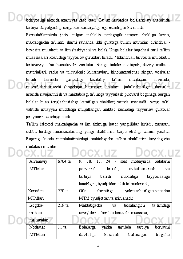 Turli tipdagi maktabgacha ta’lim muassasalarining tashkiliy tuzilmasi