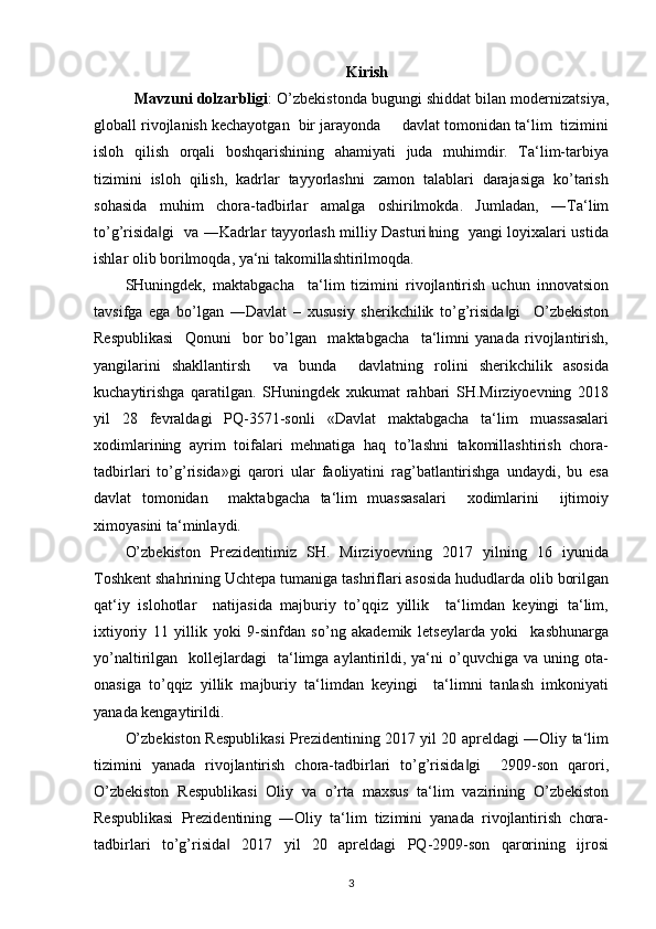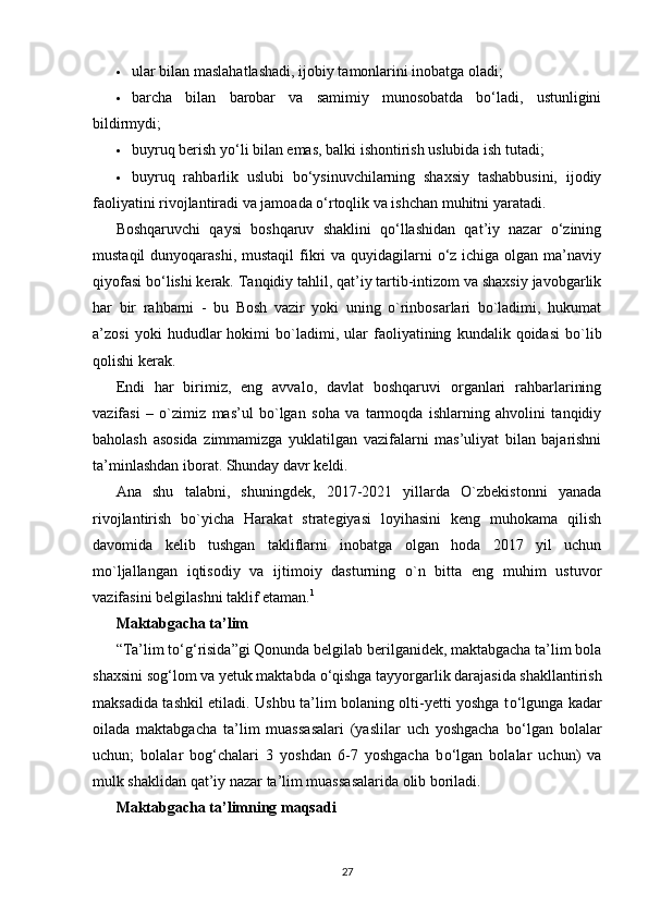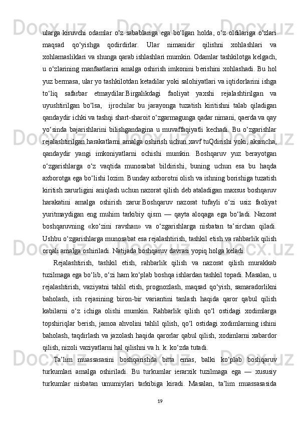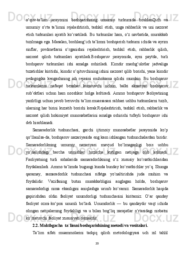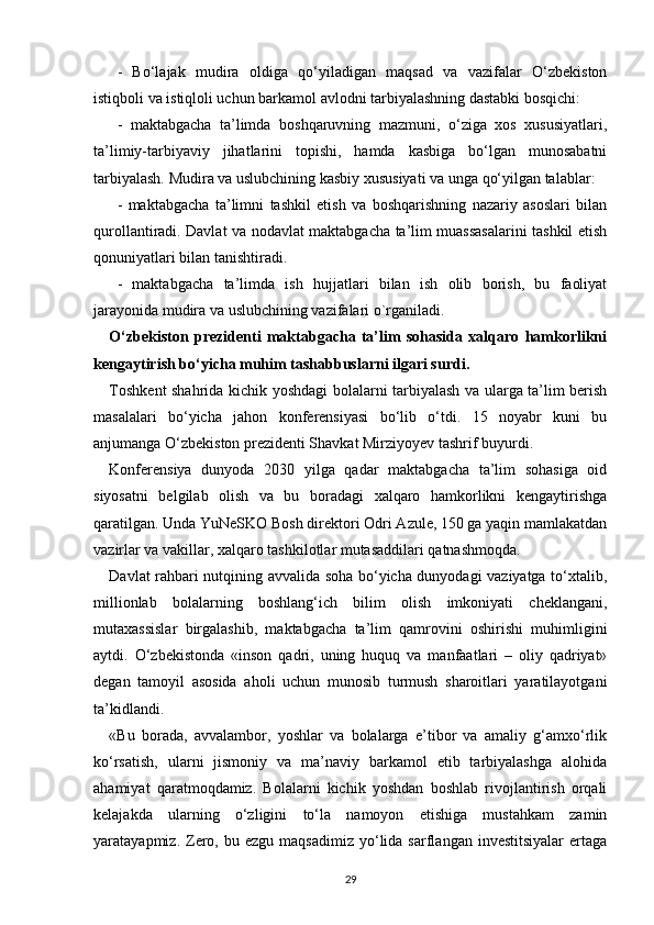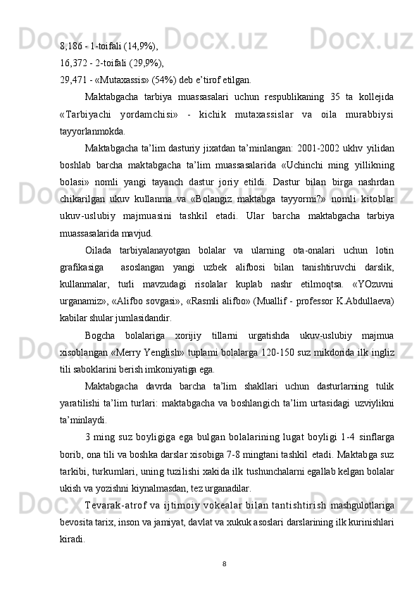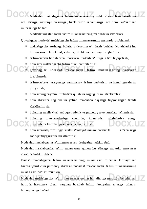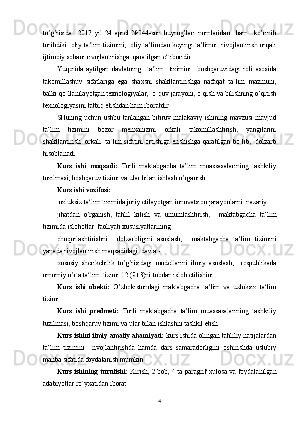 Turli tipdagi maktabgacha ta’lim muassasalarining tashkiliy tuzilmasi
