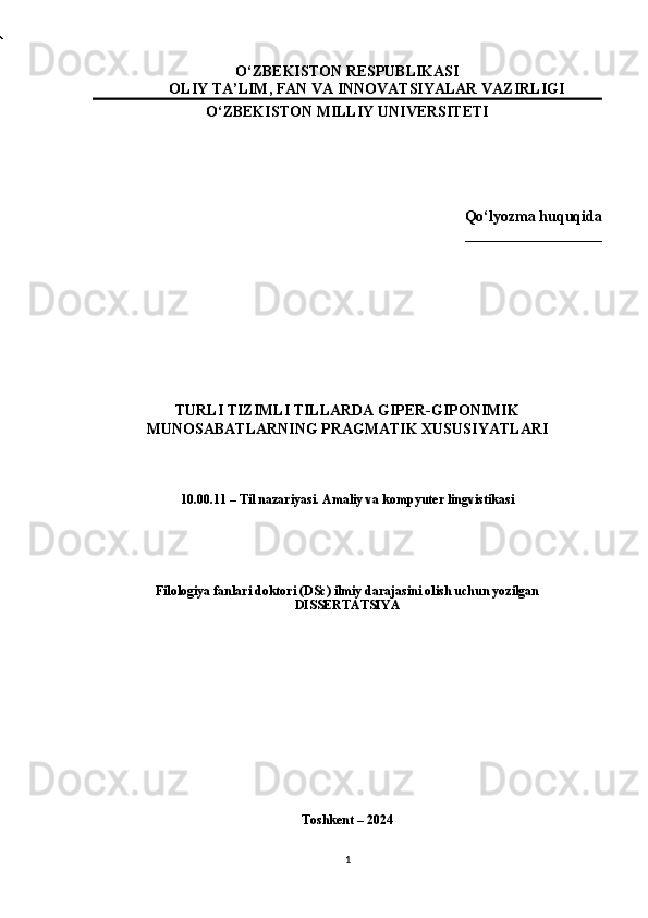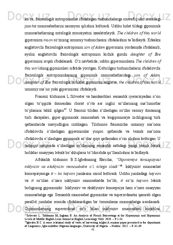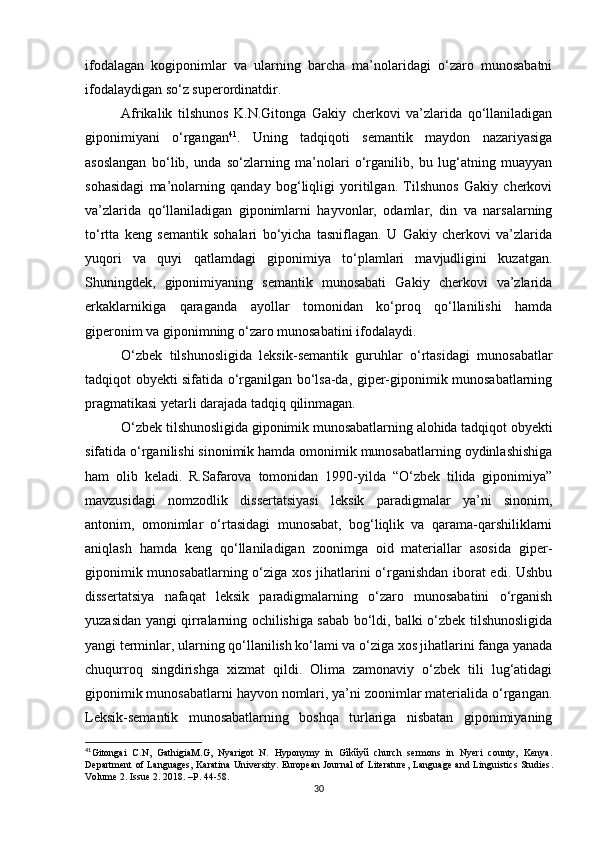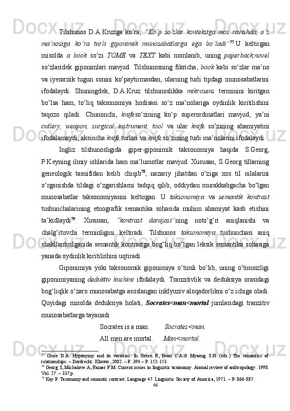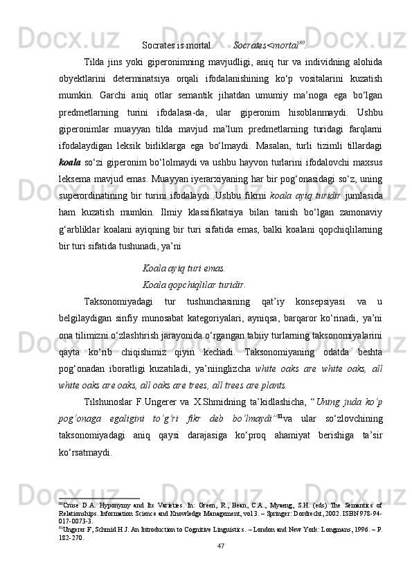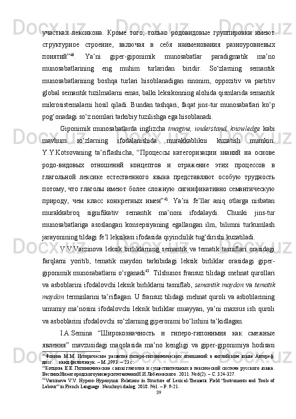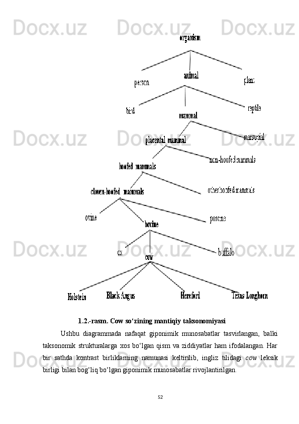 1.3.Giper-giponimik taksonomiya semantikaning o‘rganish obyekti sifatida......................................................................................................44-56