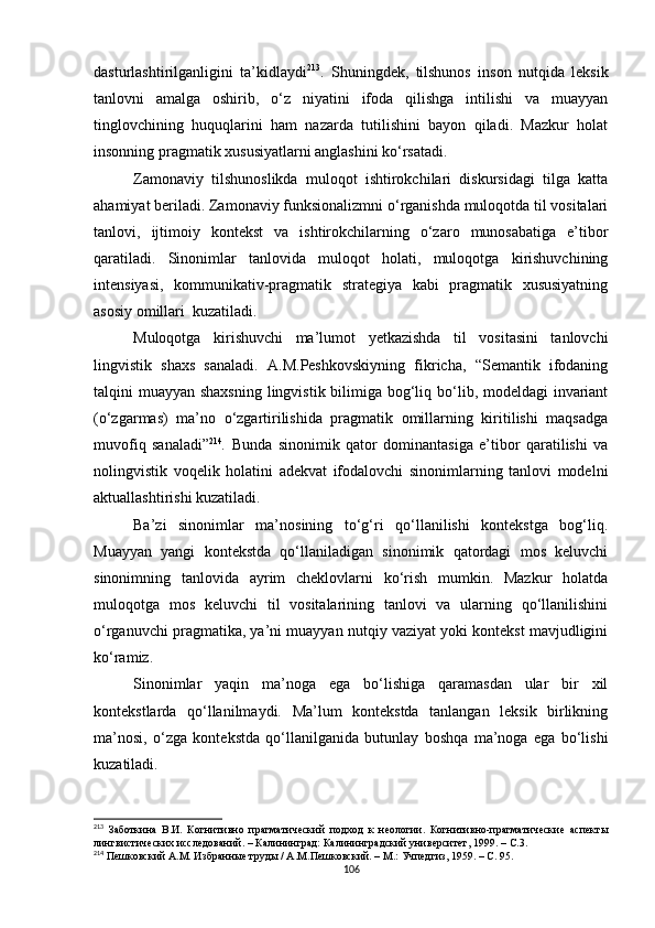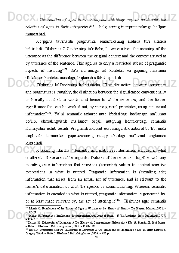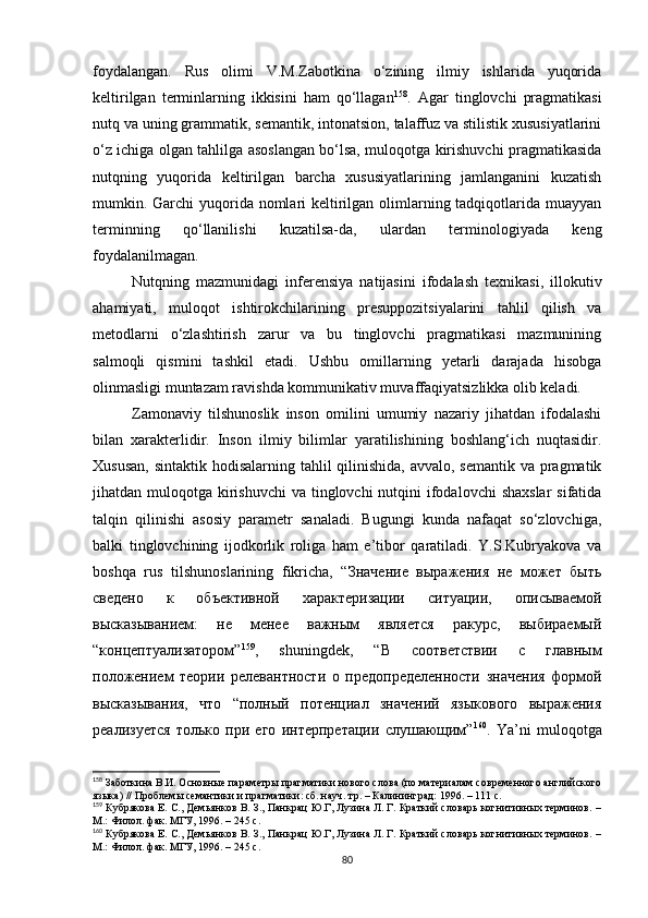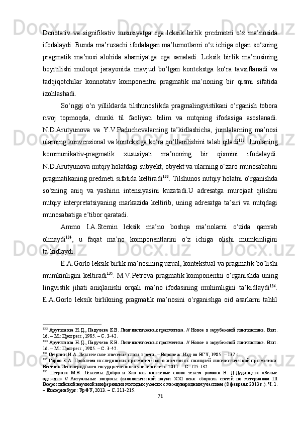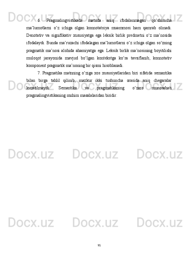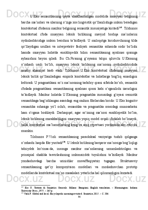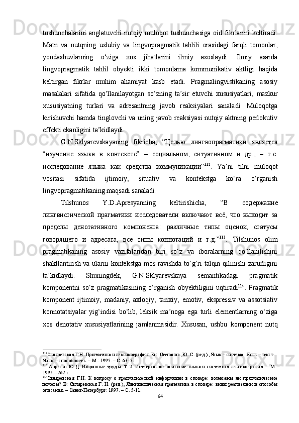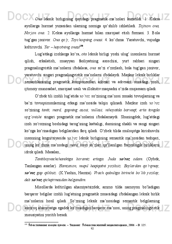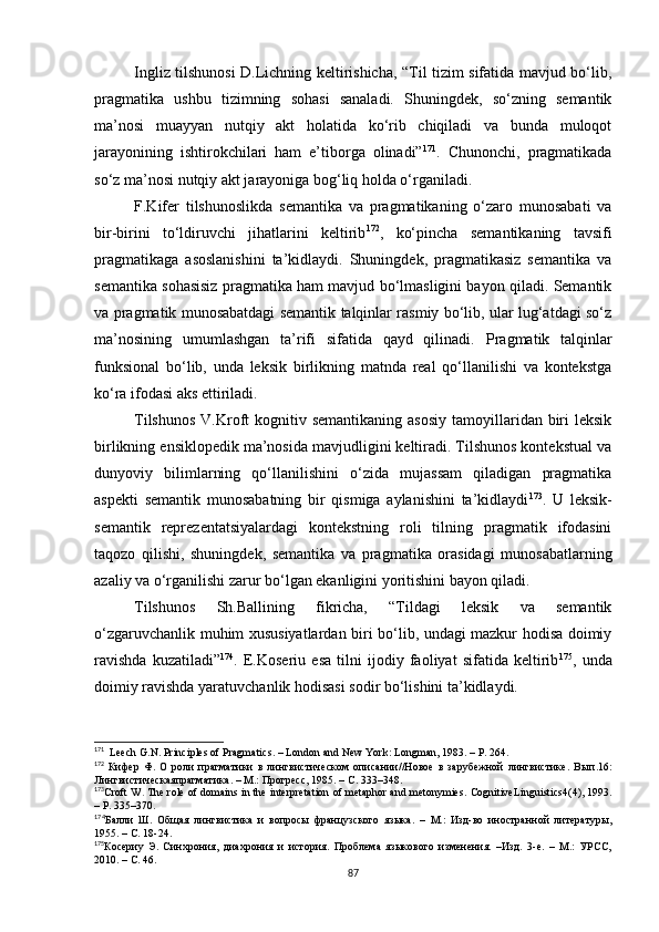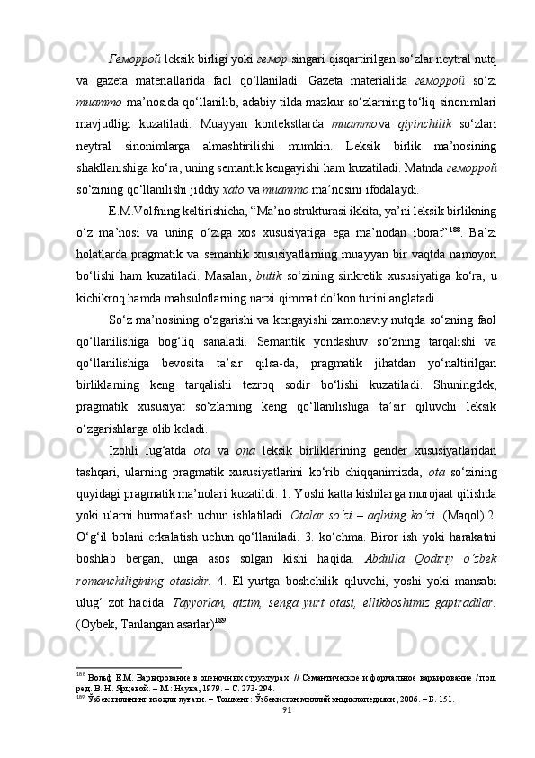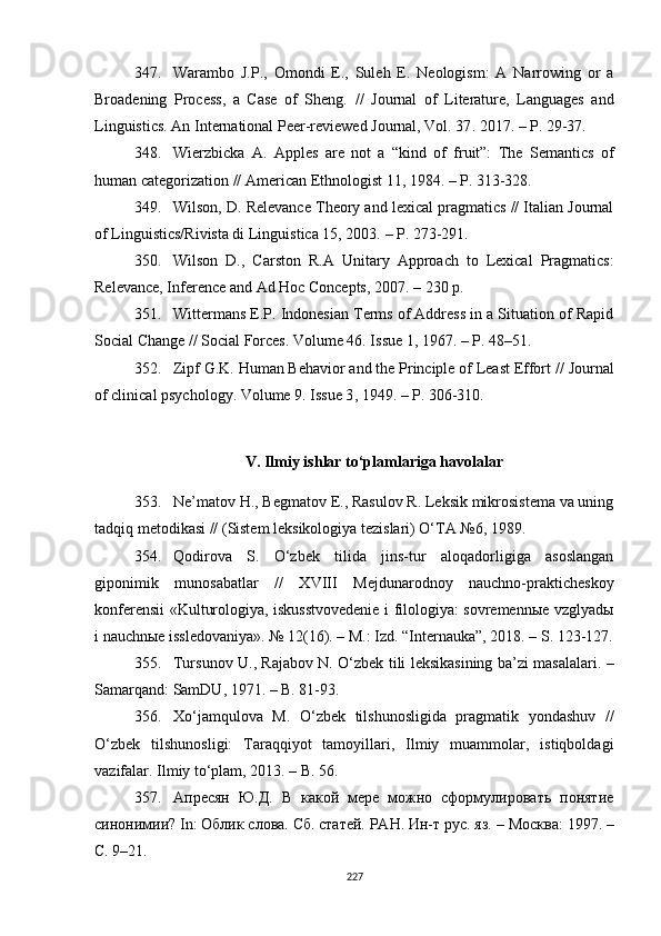 2.3 Semantika kategoriyasidagi leksik birliklar pragmalingvistikasi......85-94