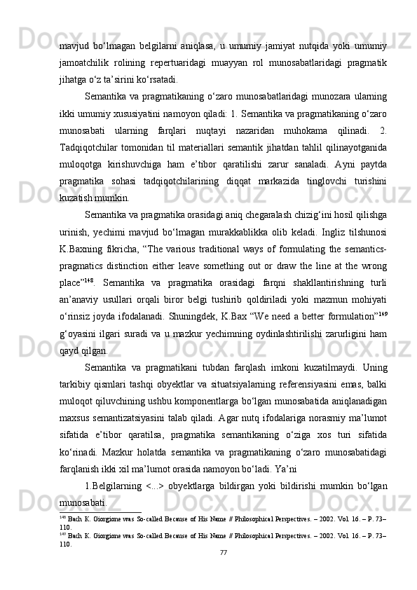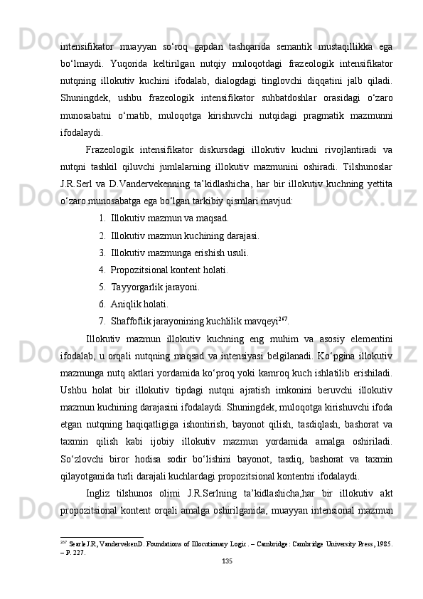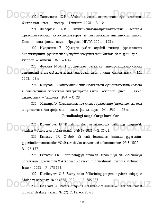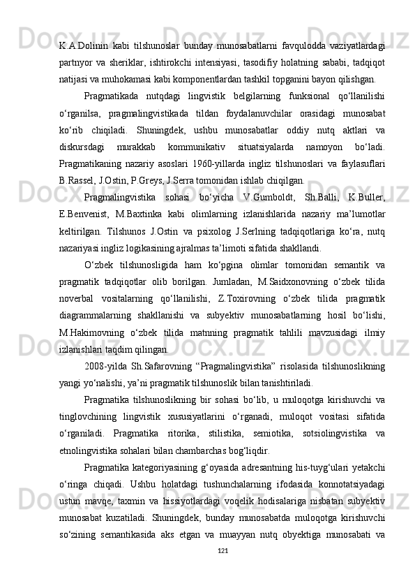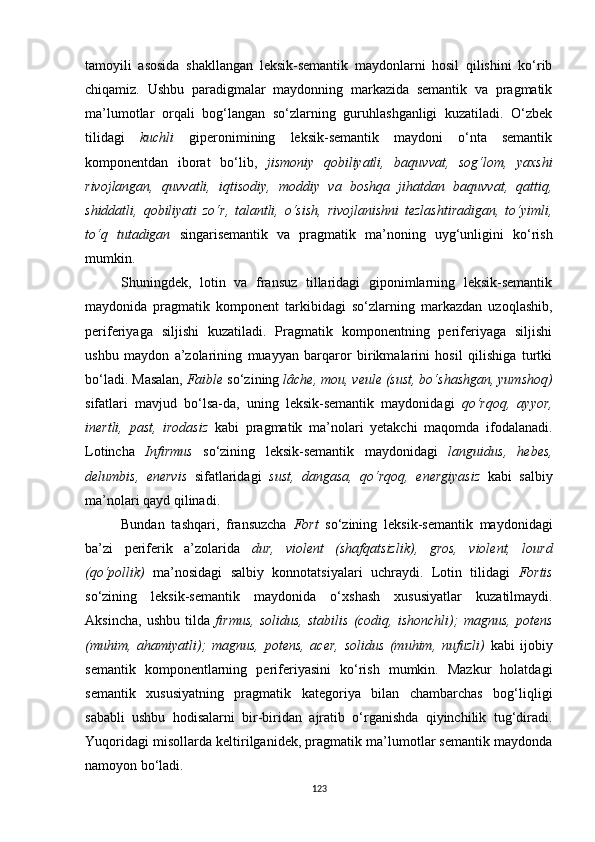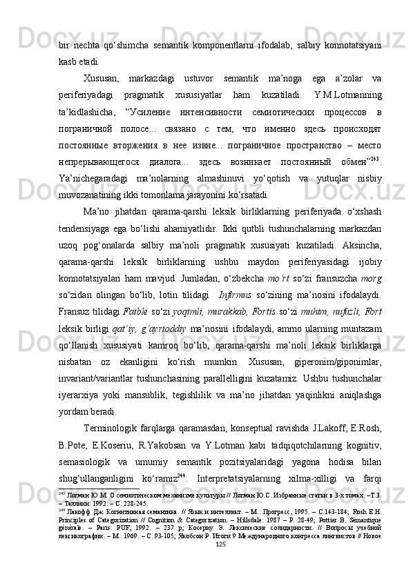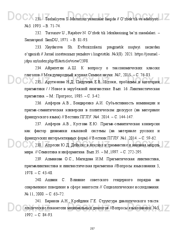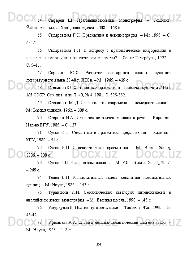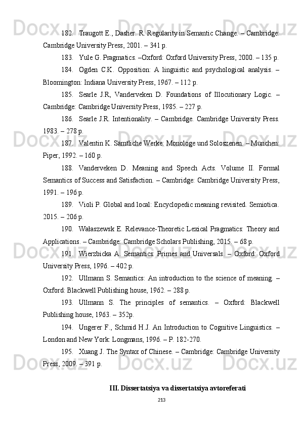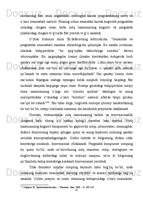 2.3 Semantika kategoriyasidagi leksik birliklar pragmalingvistikasi......85-94