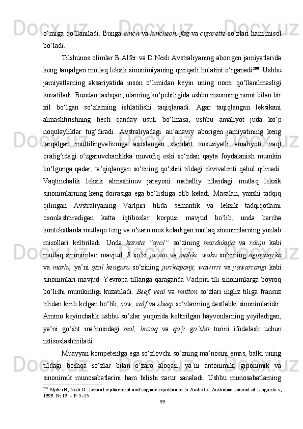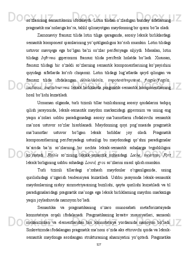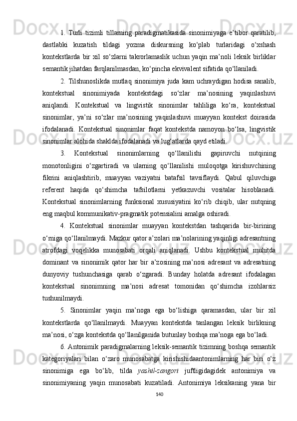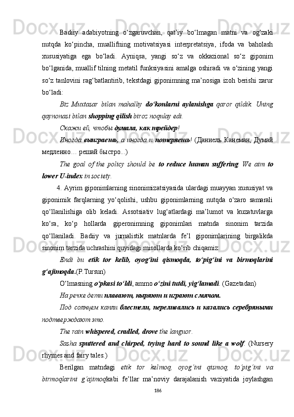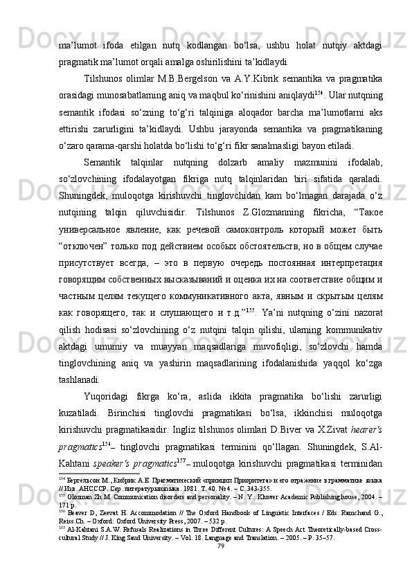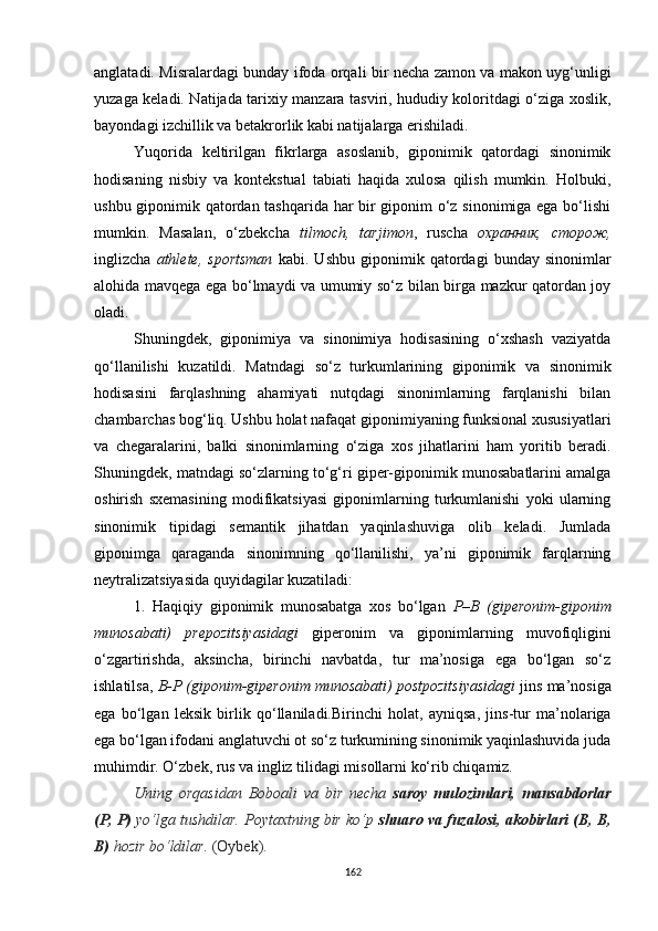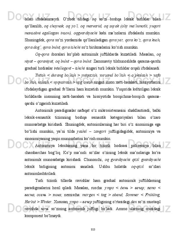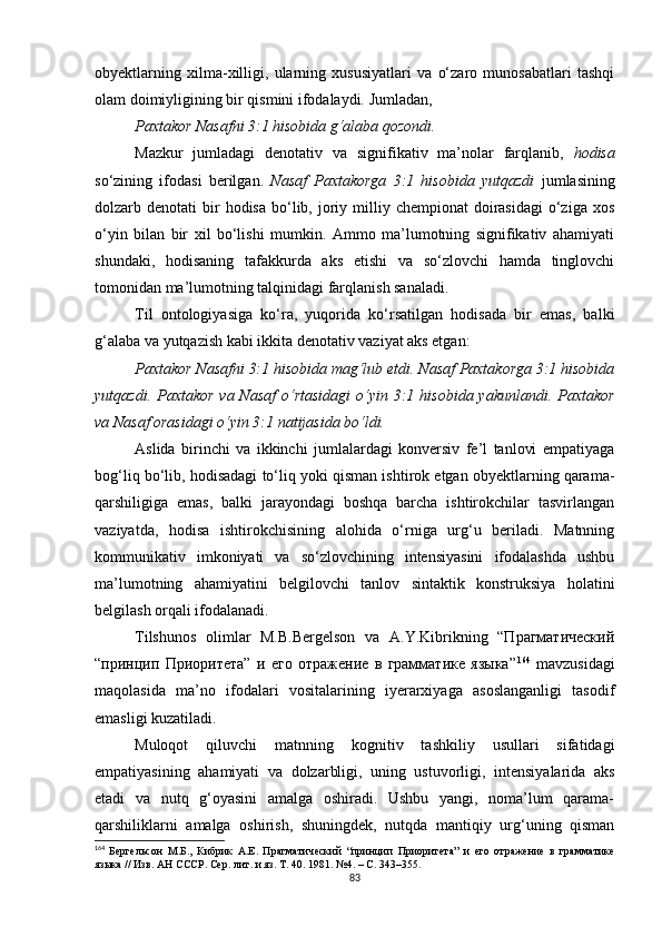 II BOB. TURLI TIZIMLI TILLARDA LEKSIK-SEMANTIK MUNOSABATLARNING PRAGMALINGVISTIK XUSUSIYATLARI..58-95