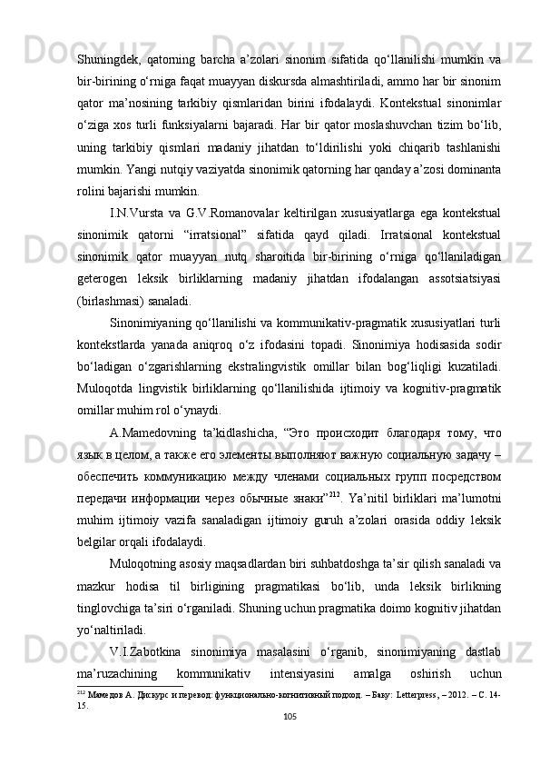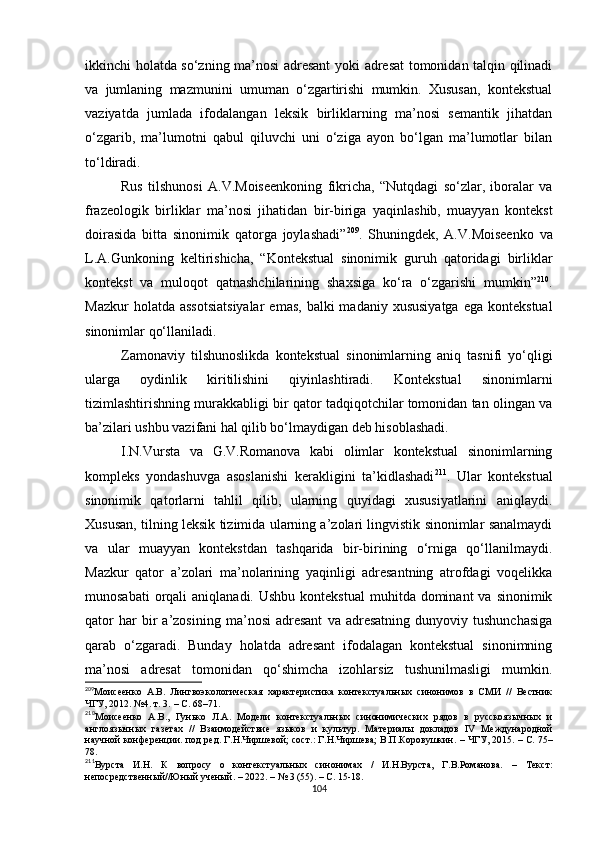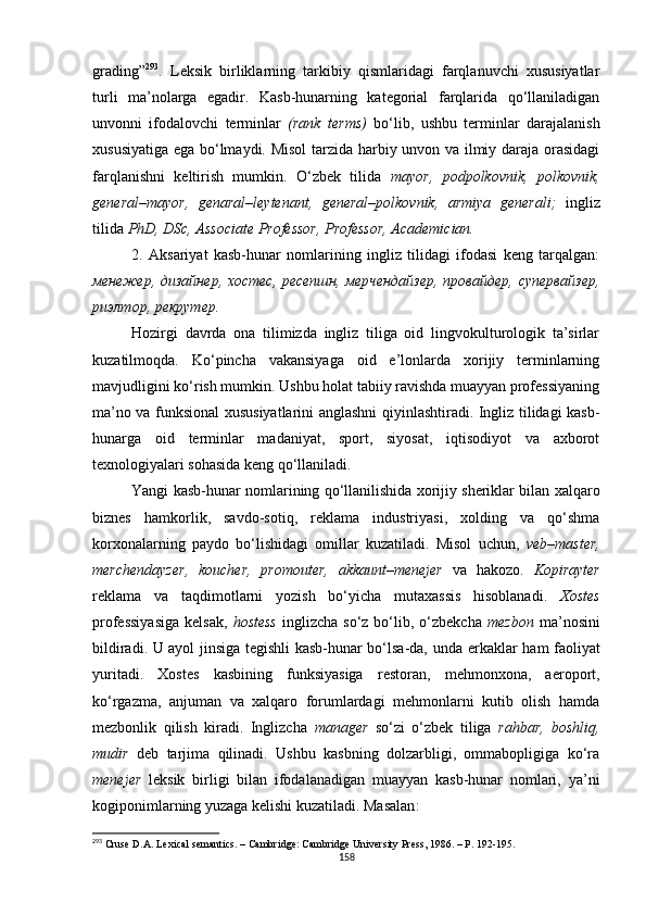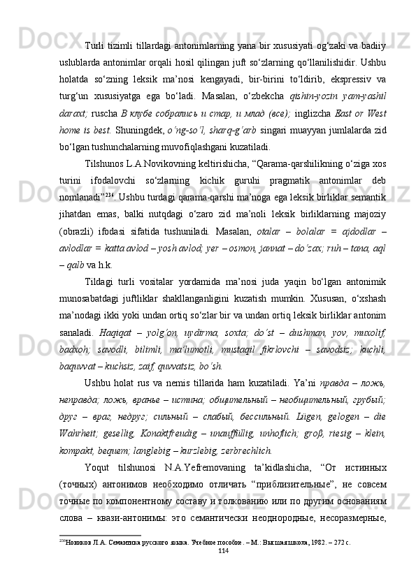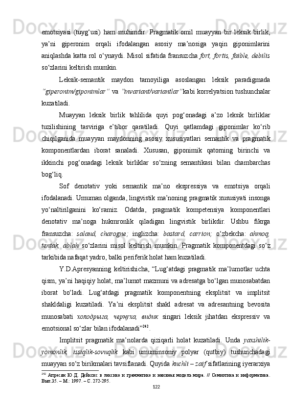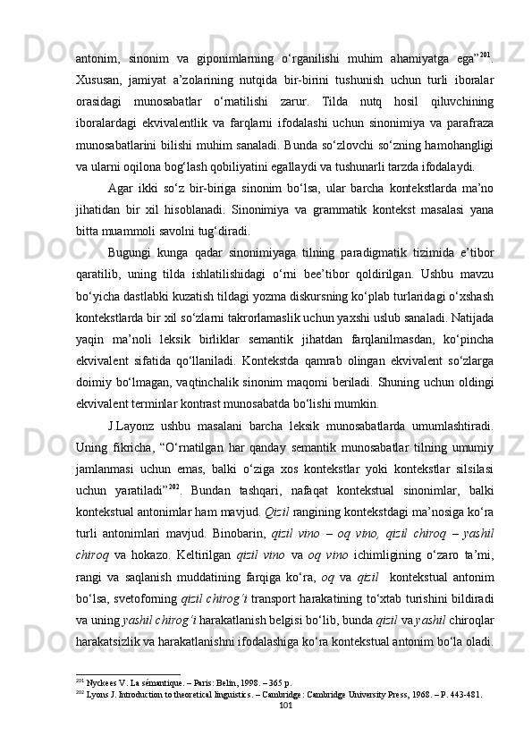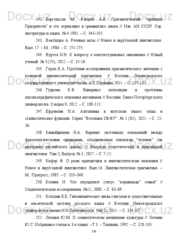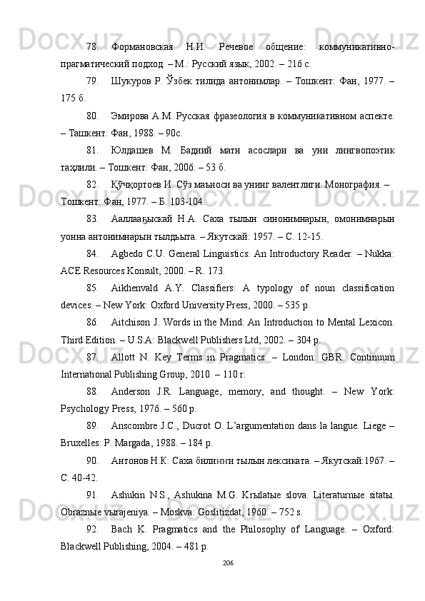 II BOB. TURLI TIZIMLI TILLARDA LEKSIK-SEMANTIK MUNOSABATLARNING PRAGMALINGVISTIK XUSUSIYATLARI..58-95