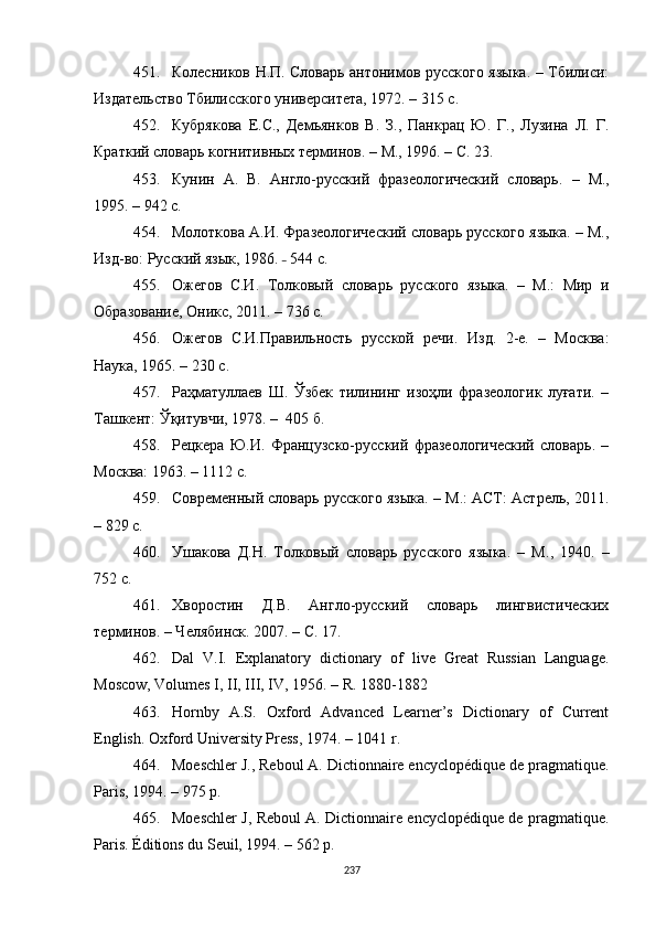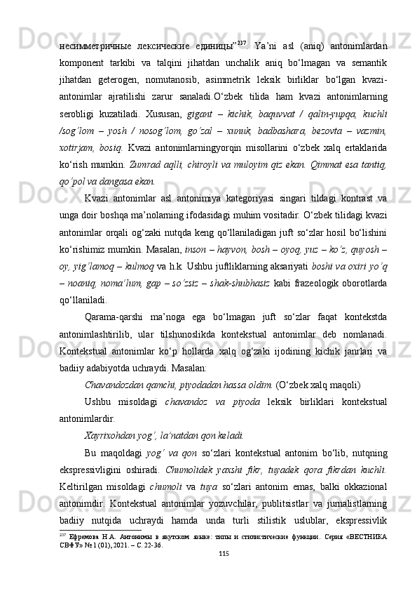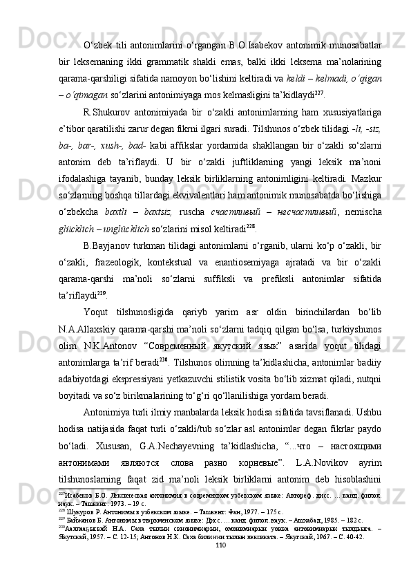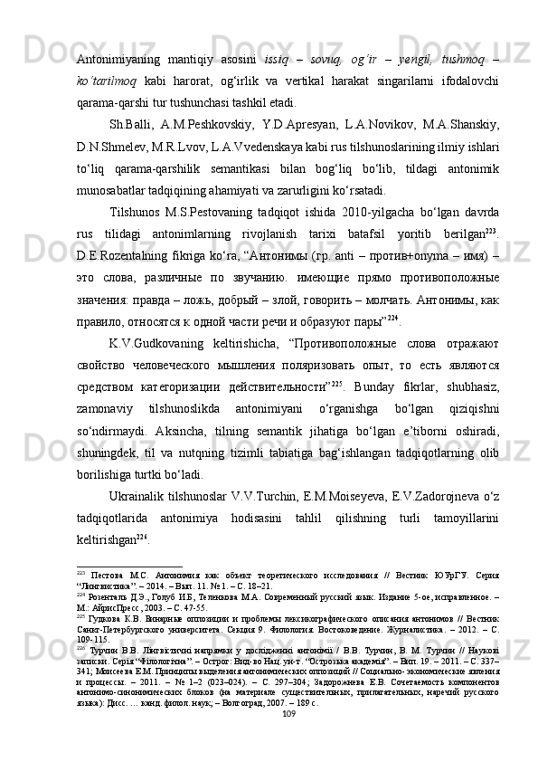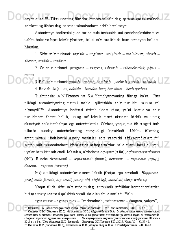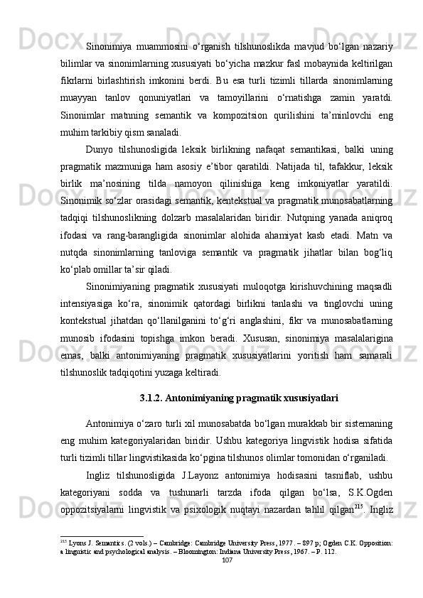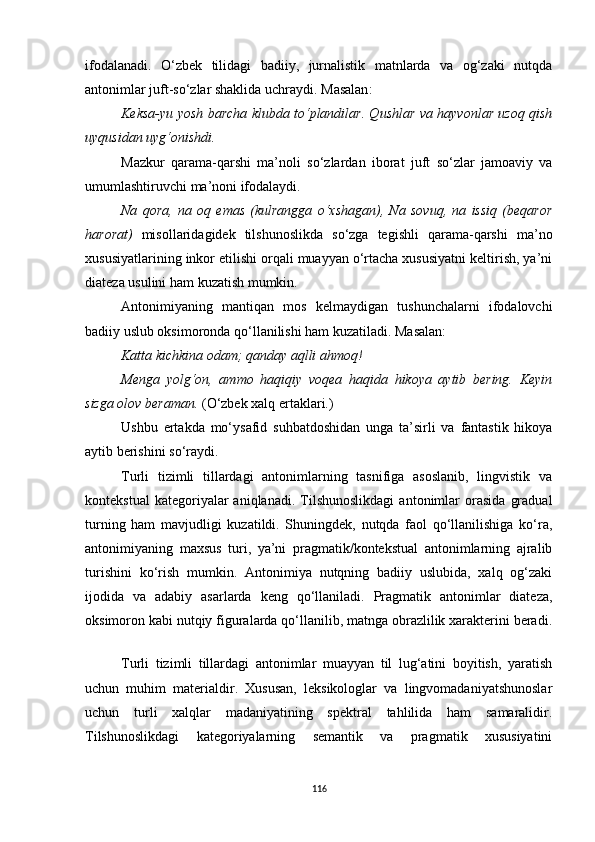 3.1.2. Antonimiyaning pragmatik xususiyatlari..................................107-117
