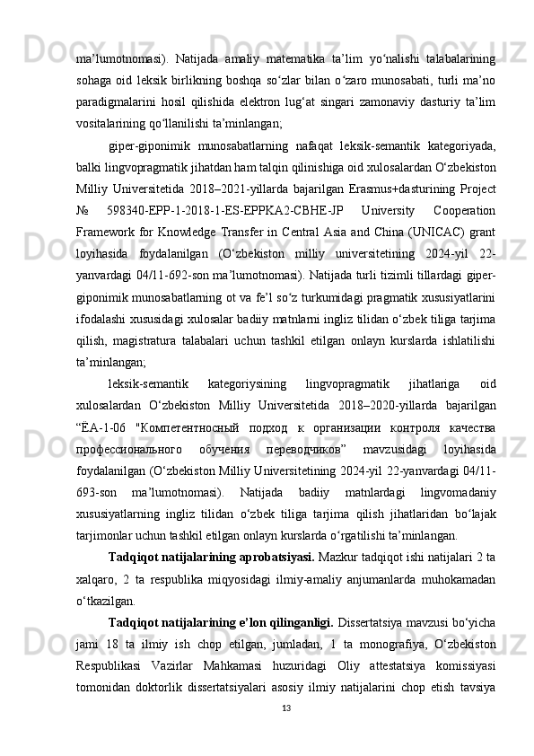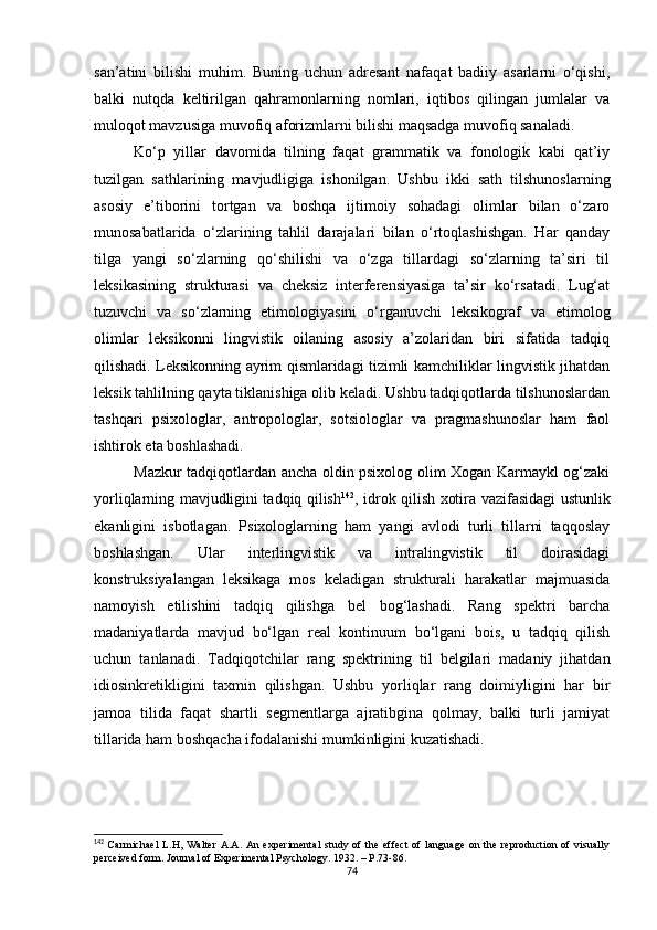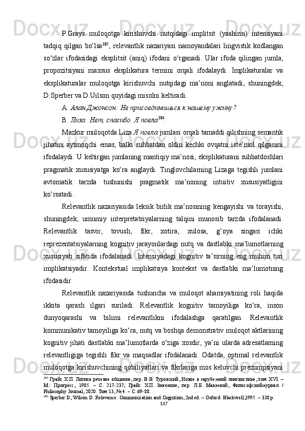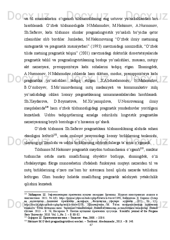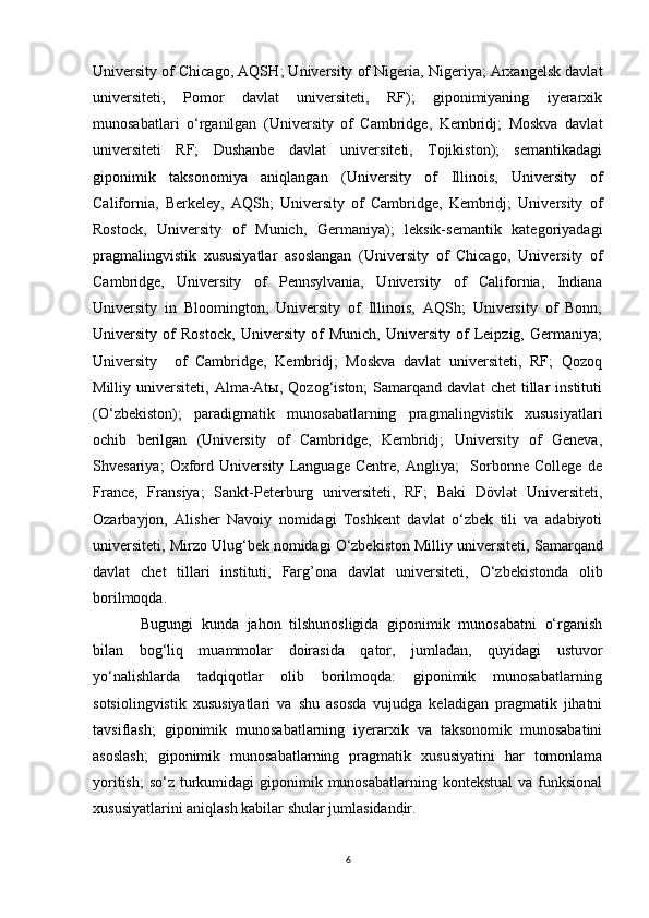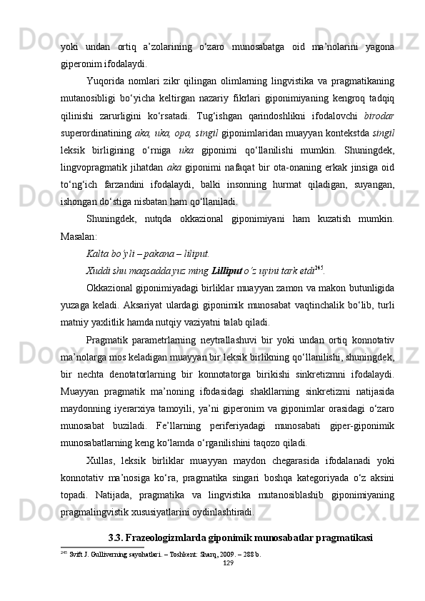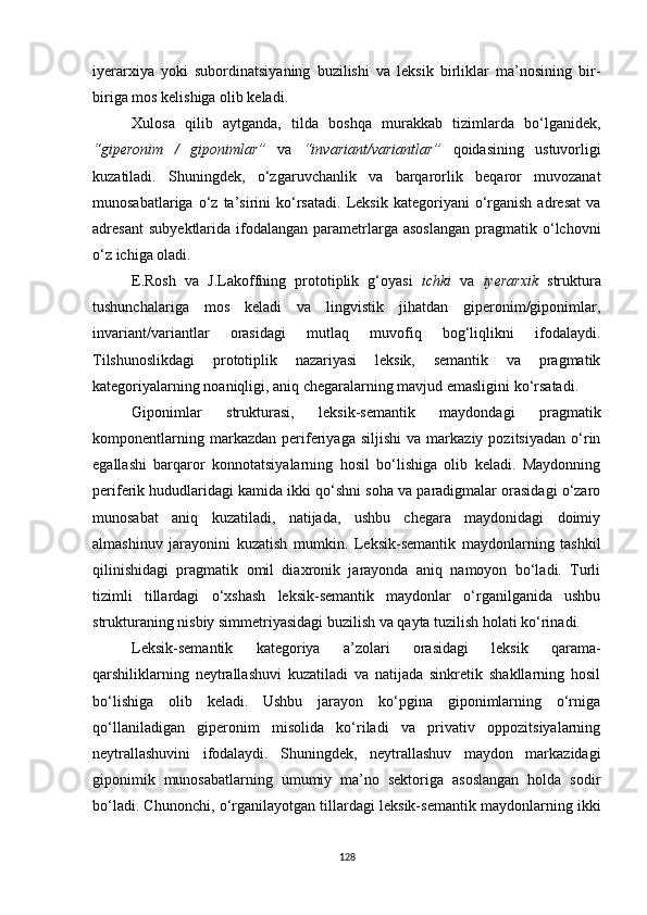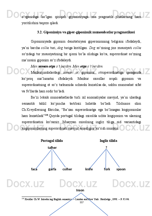 3.2. Giponimiya va giper-giponimik munosabatlar pragmatikasi.......117-130