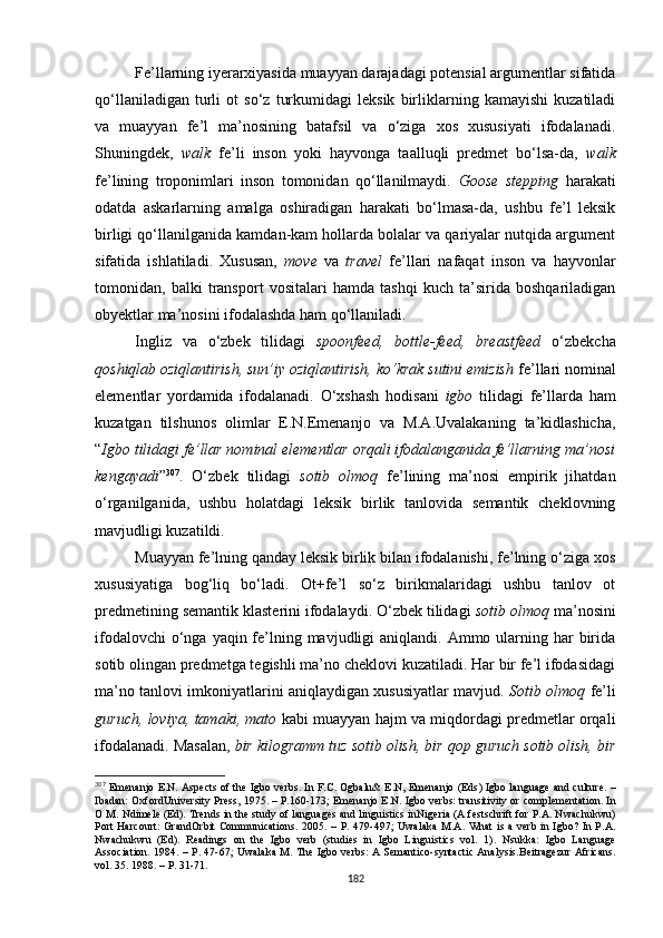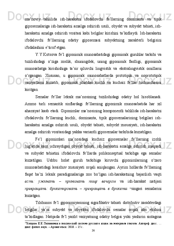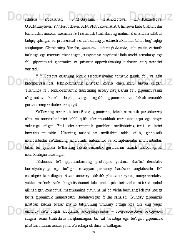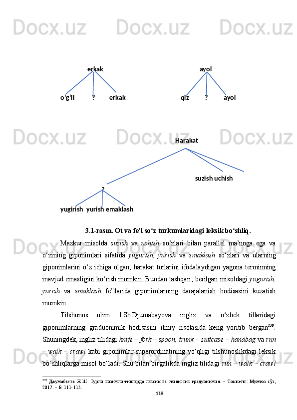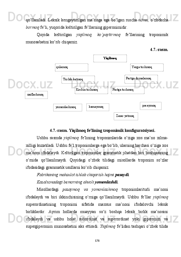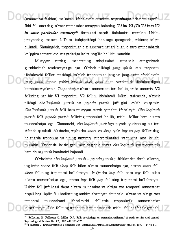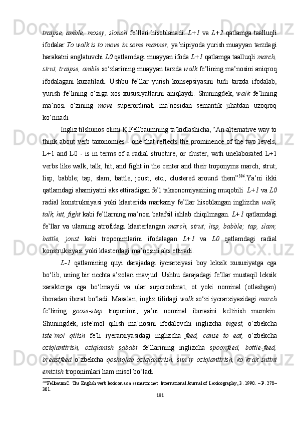 4.4. Fe’l soʻz turkumiga oid leksik birlik giper-giponimik munosabatlarining pragmalingvistik xususiyatlari.............................................................171-194