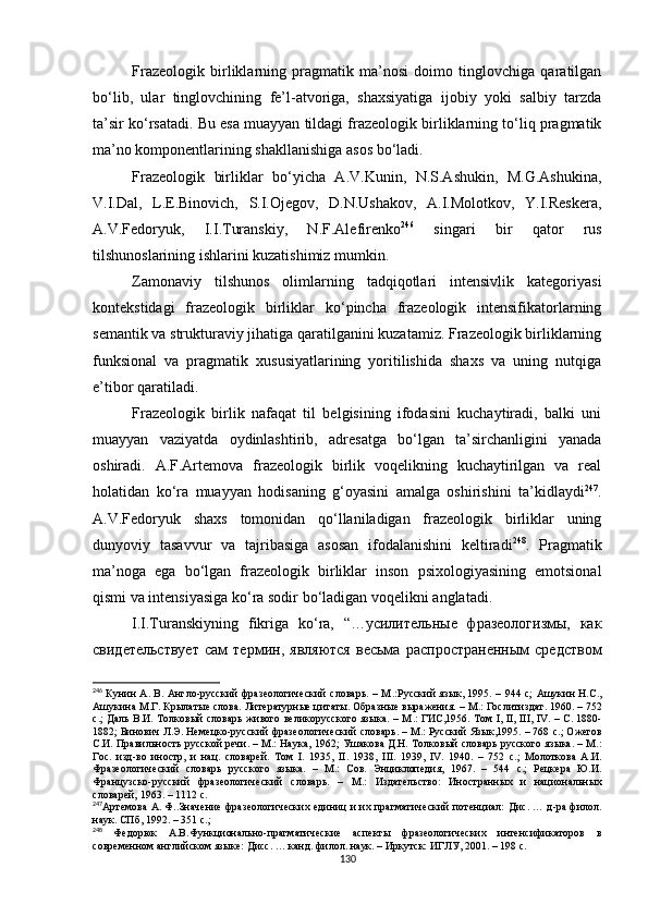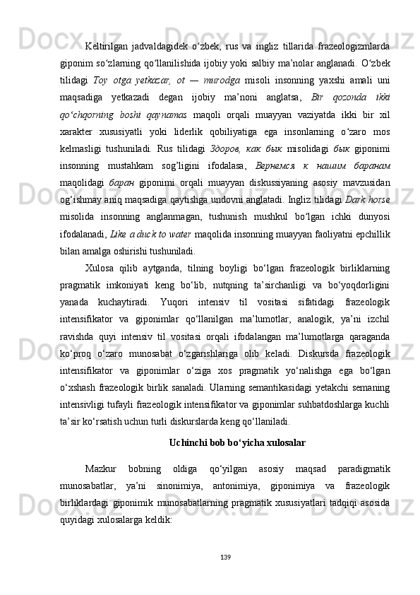 3.3. Frazeologizmlarda giponimik munosabatlar pragmatikasi….......130-140