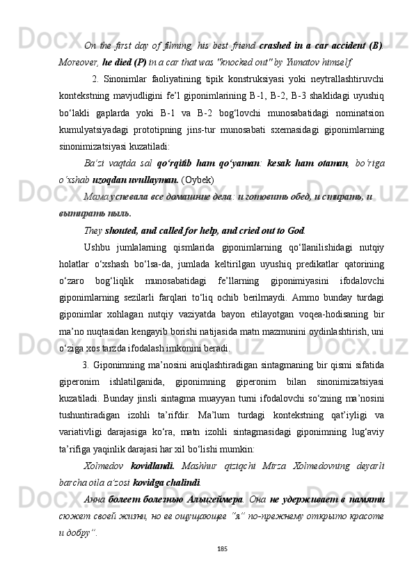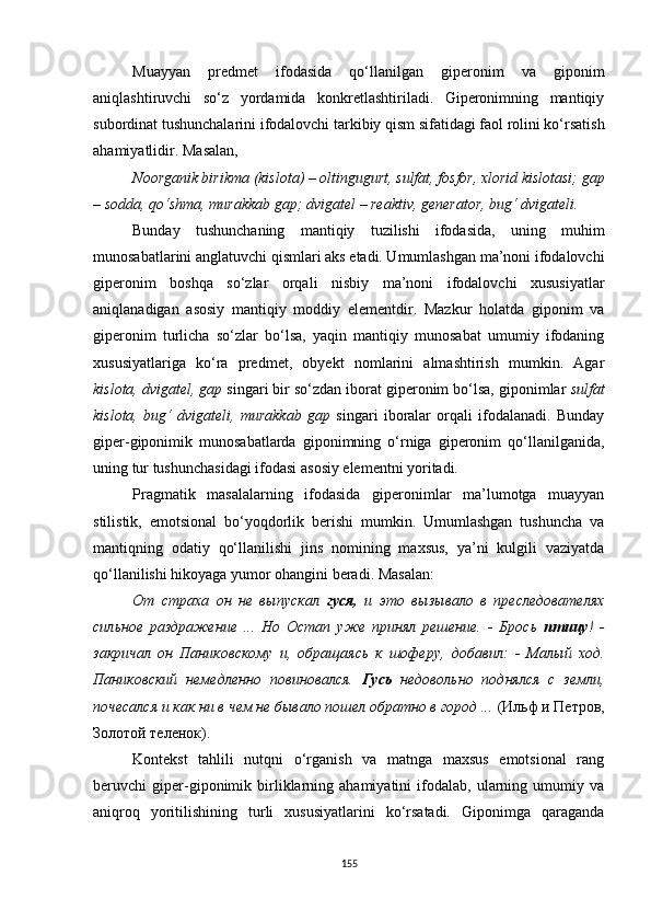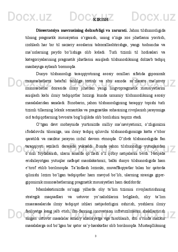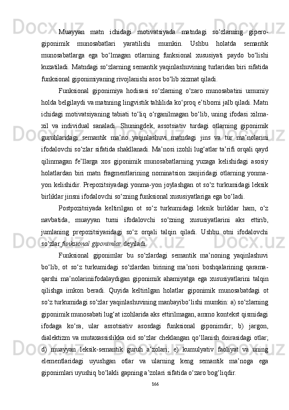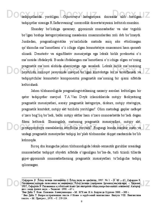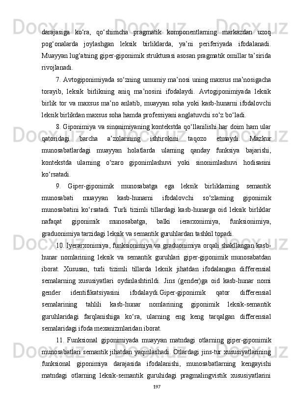 IV BOB. GIPER-GIPONIMIK MUNOSABATLARNING PRAGMALINGVISTIK XUSUSIYATLARI…………………………...144-197