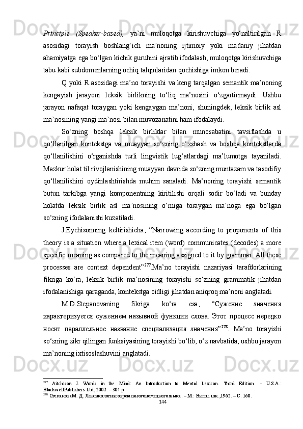 4.1. So‘z ma’nosining torayishi va avtogiponimiya hodisasi..............144-149
