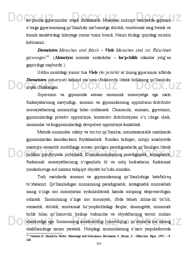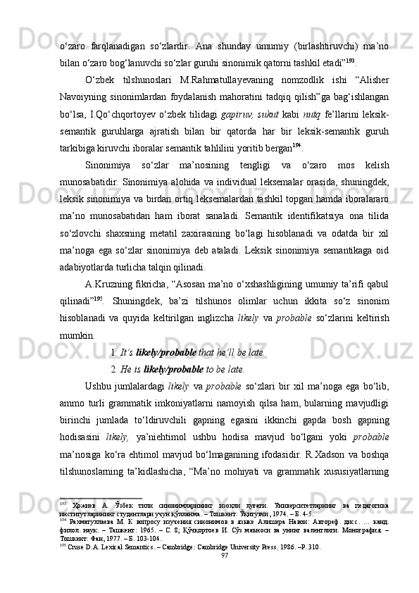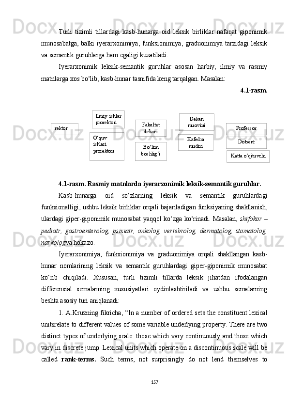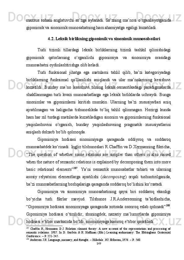 4.2. Leksik birlikning giponimik va sinonimik munosabatlari............149-157
