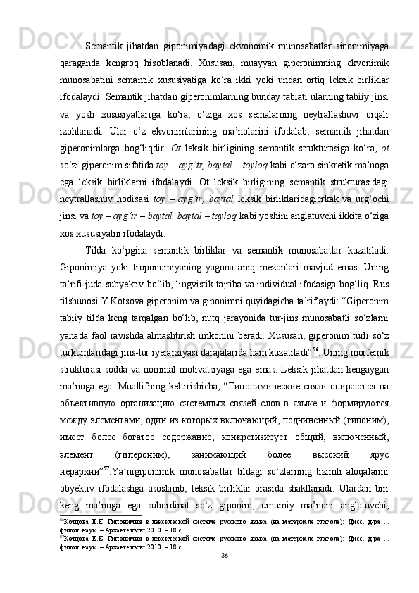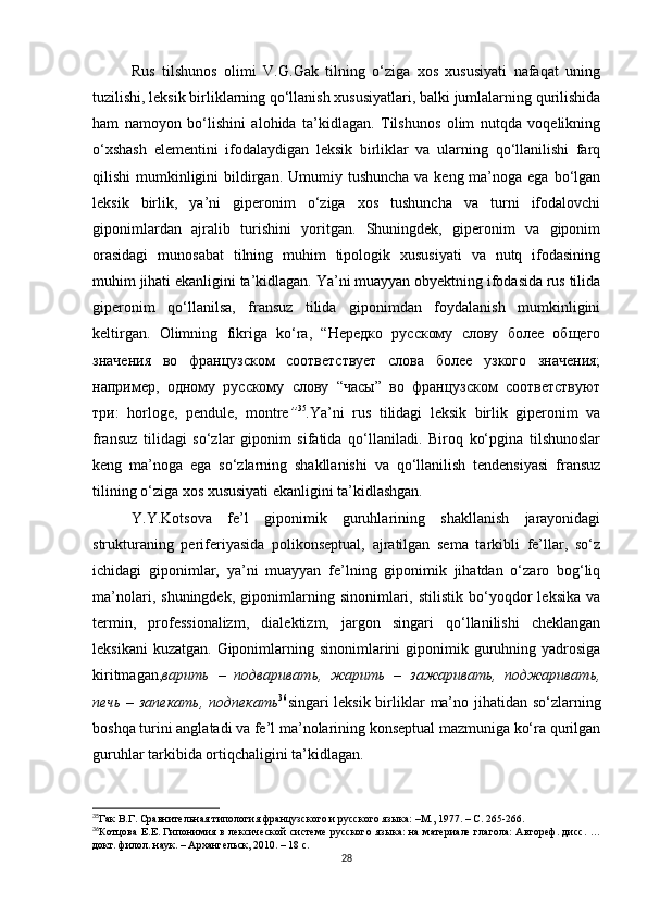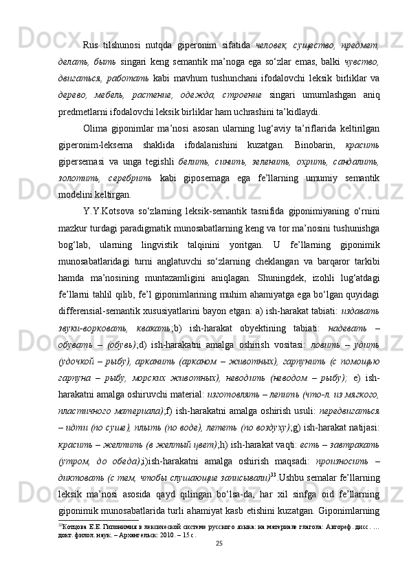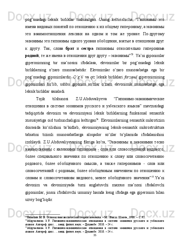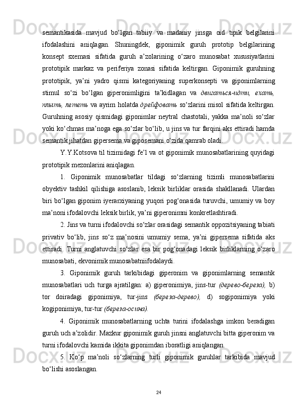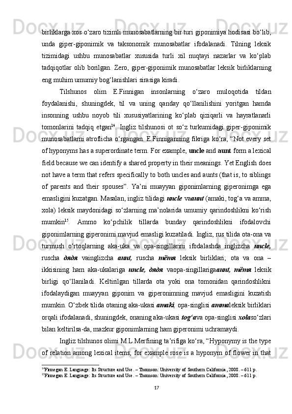 1.2.Giper-giponimik munosabatlarning turli tizimli tillarda tadqiq qilinishi.....................................................................................................32-44