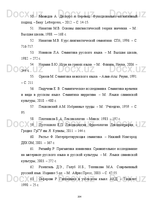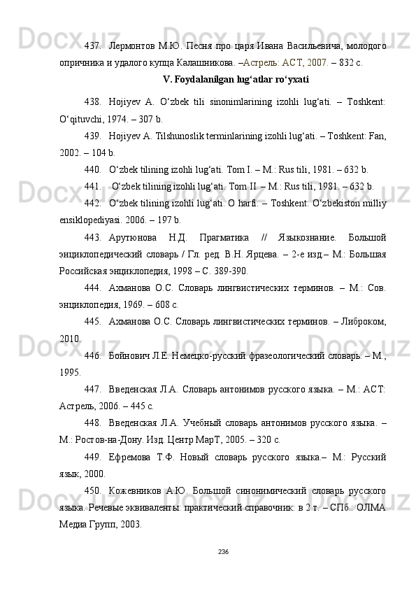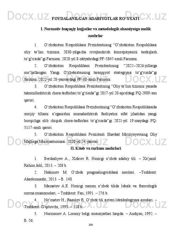 FOYDALANILGAN ADABIYOTLAR RO‘YXATI ...............................202-241