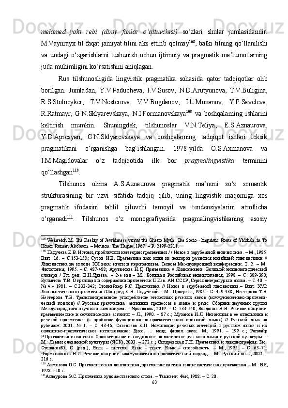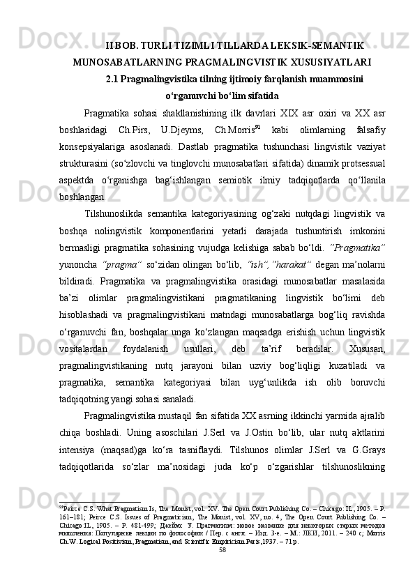 2.1 Pragmalingvistika tilning ijtimoiy farqlanish muammosini o‘rganuvchi bo‘lim sifatida..........................................................................................58-69