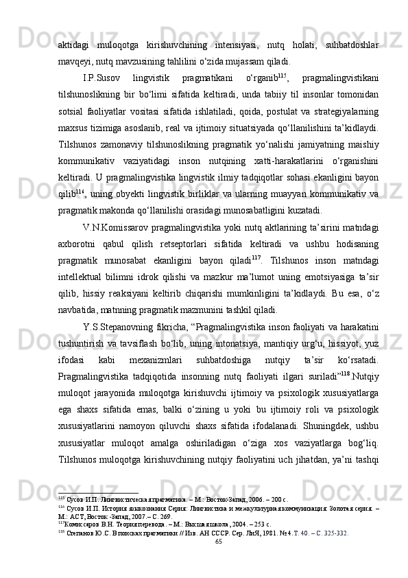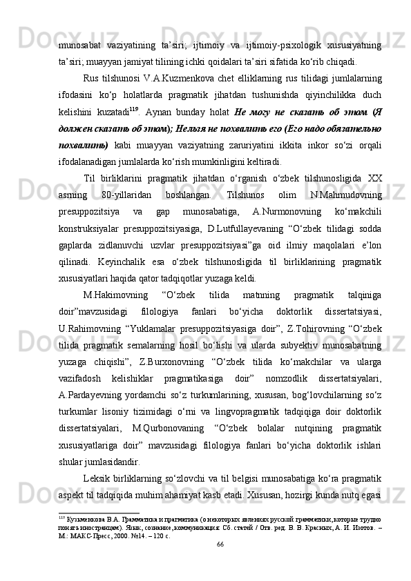 2.2.Leksik qatlamdagi pragmalingvistik xususiyatlar.............................69-85